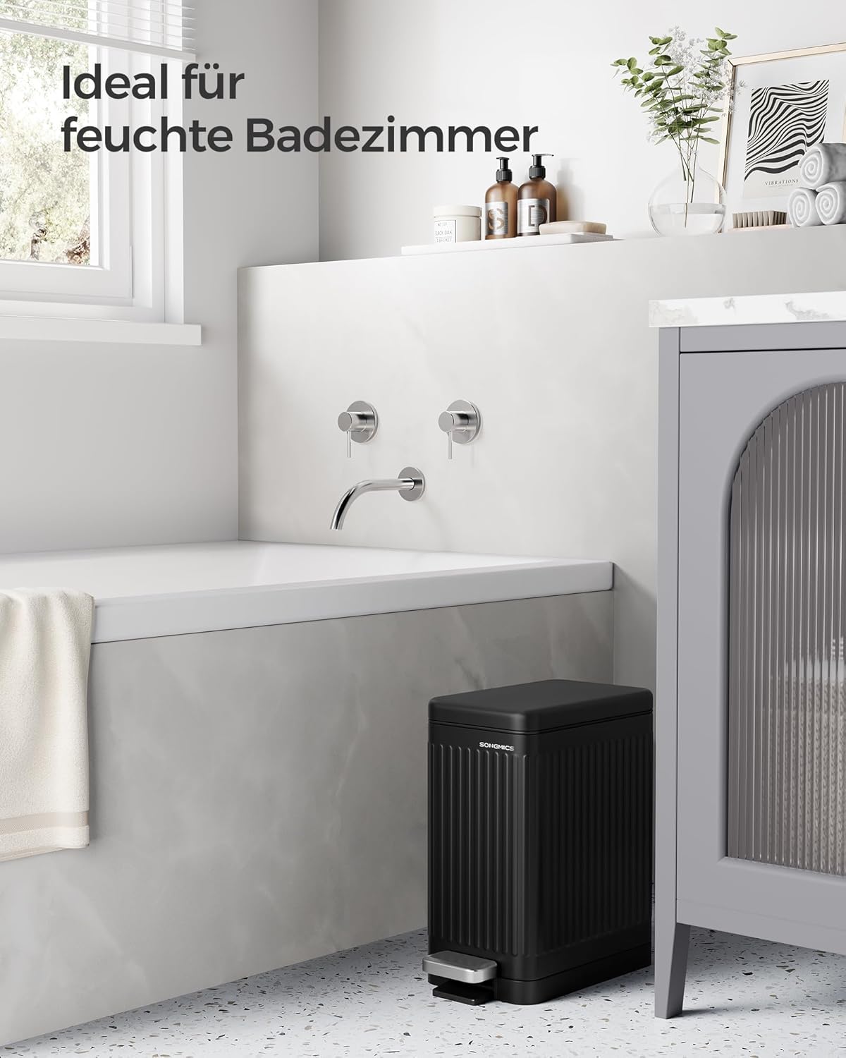 - 【SANFT SCHLIESSEN & OFFEN BLEIBEN】Mit dem Softclose-Deckel schliesst der Kosmetikeimer leise und sanft, ohne abrupt zuzuschlagen. Der Deckel kann offen bleiben, damit Sie den Abfall mühelos entsorgen, wenn das Bad länger gereinigt werden muss