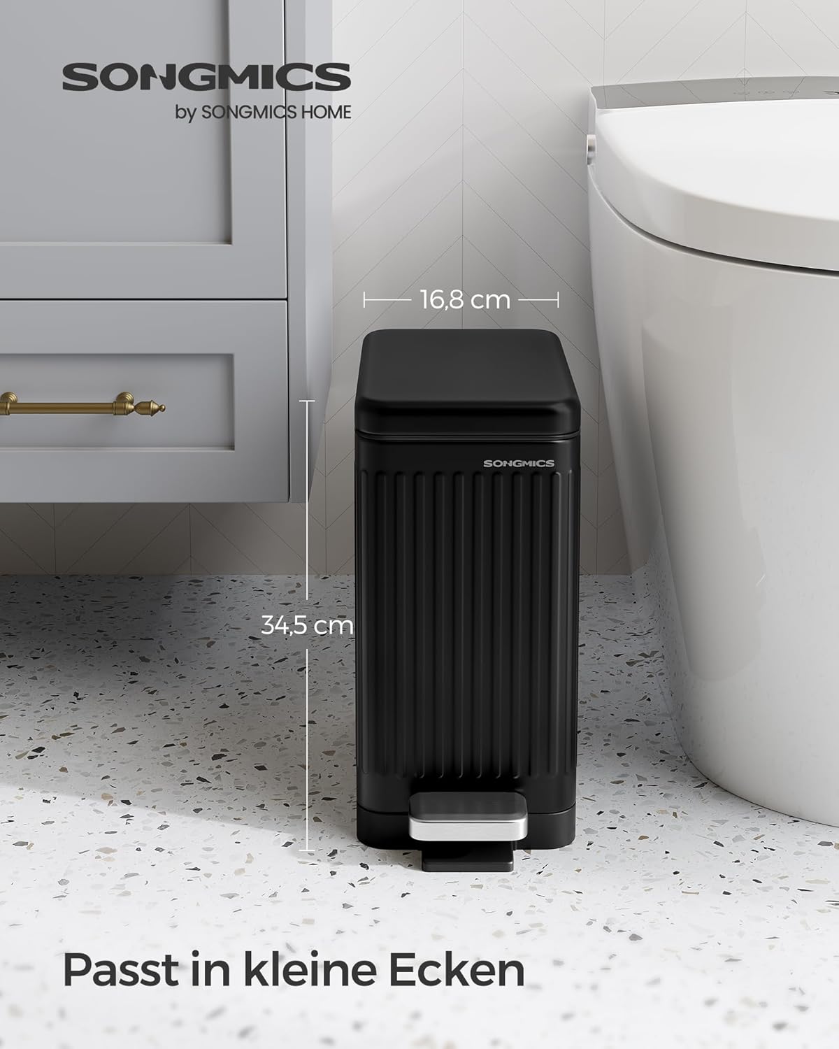 - 【STILVOLL & PLATZSPAREND】Mit einer geriffelten Oberfläche sieht dieser 10-Liter-Mülleimer modern, aber auch klassisch aus und passt zu verschiedenen Einrichtungsstilen. Dank der kompakten Form (33,5 x 16,8 x 34,5 cm) ist er für kleine Räume gut