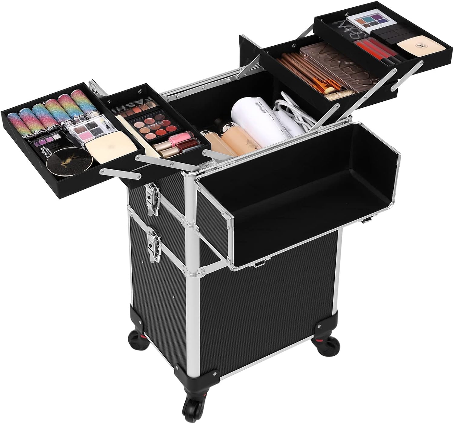 - [Abschliessbar & einfach zu bewegen] Dank Schlösser und 4 Schlüssel schützt der Schminkkoffer Ihr Make-up vor fremden Händen. 4 Rollen sind abnehmbar, einfach anzubringen und 360° drehbar, damit Sie den Make-up Koffer einfach bewegen – für Reisen