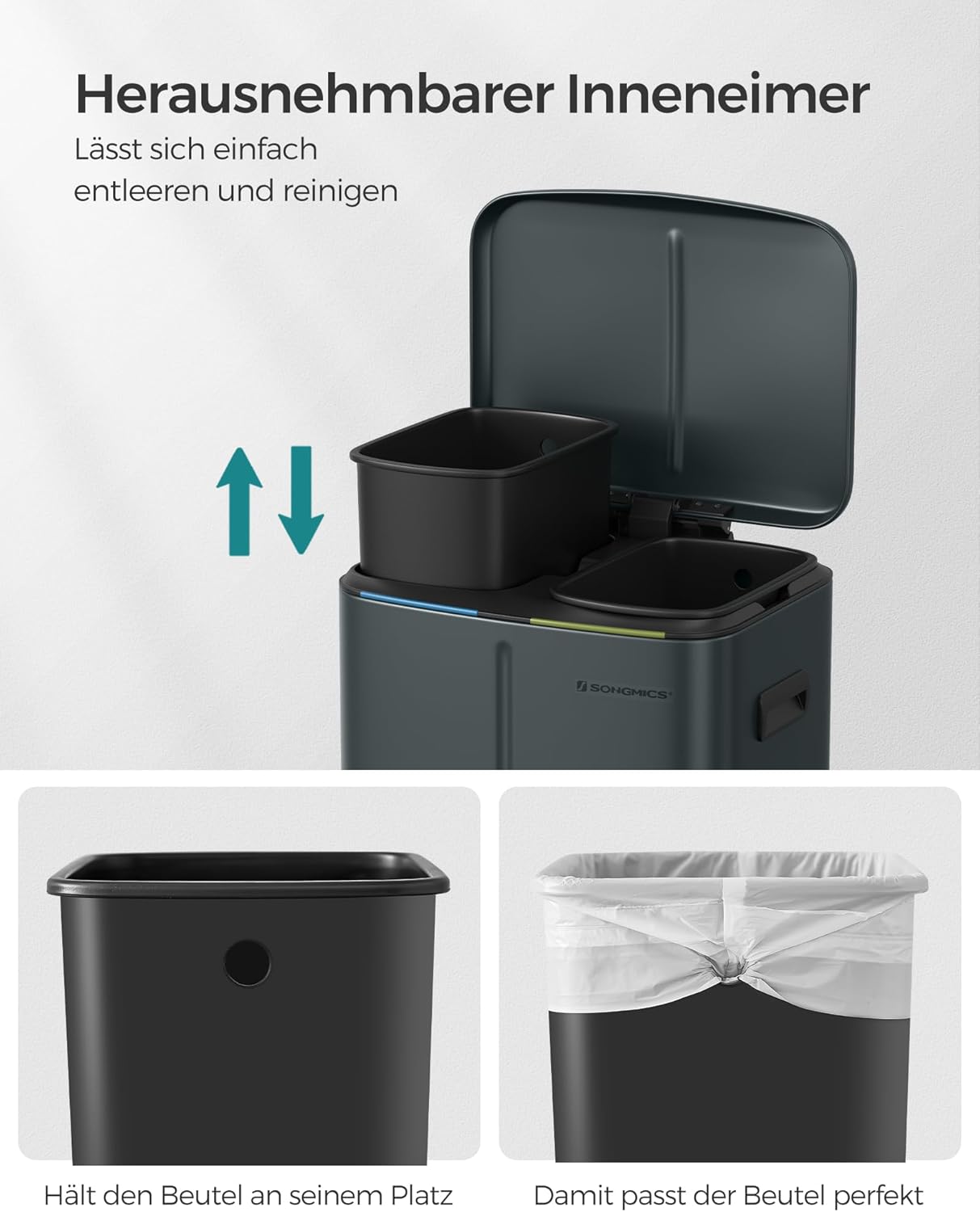 - [Praktische Inneneimer] Die 2 herausnehmbaren Inneneimer ermöglichen eine einfache Reinigung. Das hintere Loch macht den Austausch des Müllsacks leicht und hält ihn gleichzeitig sicher an seinem Platz