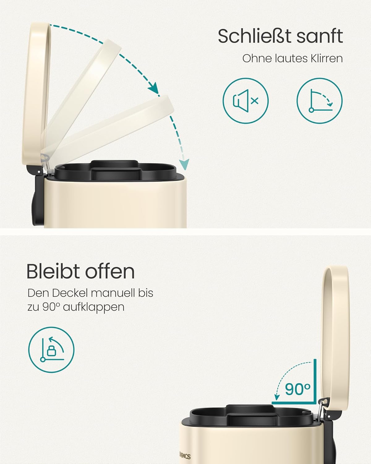- [Softclose-Deckel] Der Deckel des Mülleimers für die Küche schliesst langsam, leise und sanft und fällt nicht mit einem lauten Knall zu, um unangenehme Geräusche zu verhindern