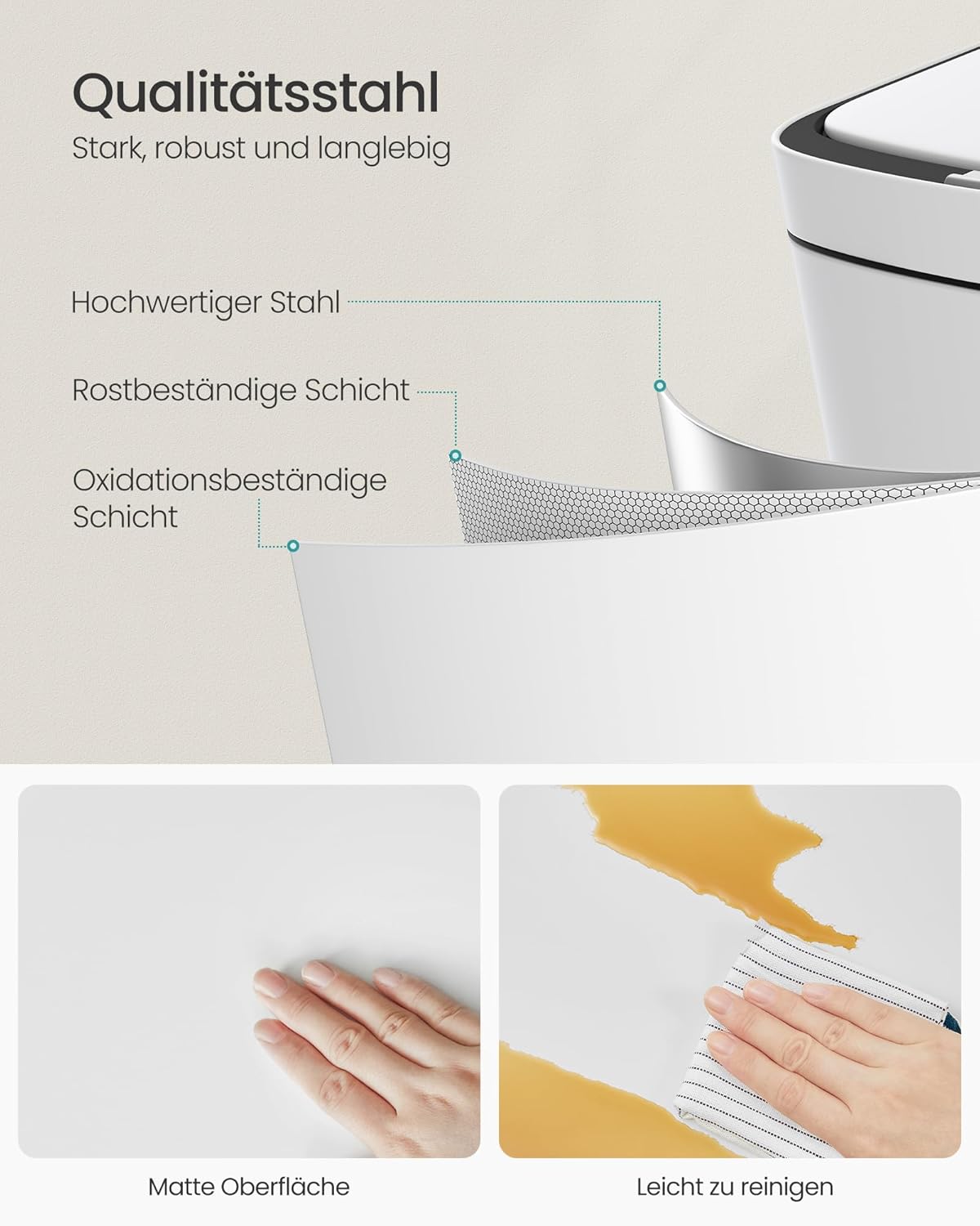 - 【PLATZSPAREND & PFLEGELEICHT】Dank des vertikalen Profils dieses Mülleimers können Sie die Raumeffizienz maximieren, er ist damit ideal für kleine Räume. Sein schlankes Design mit leicht zugänglichen Ecken macht ihn einfach zu reinigen