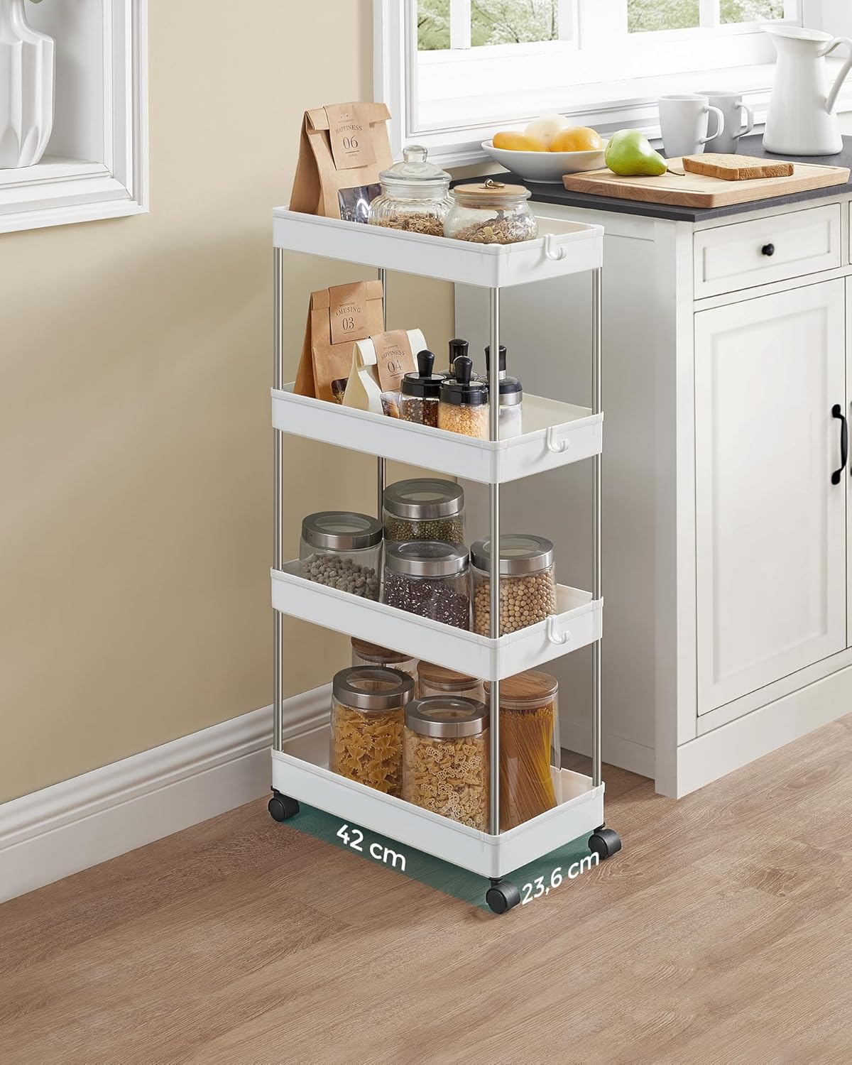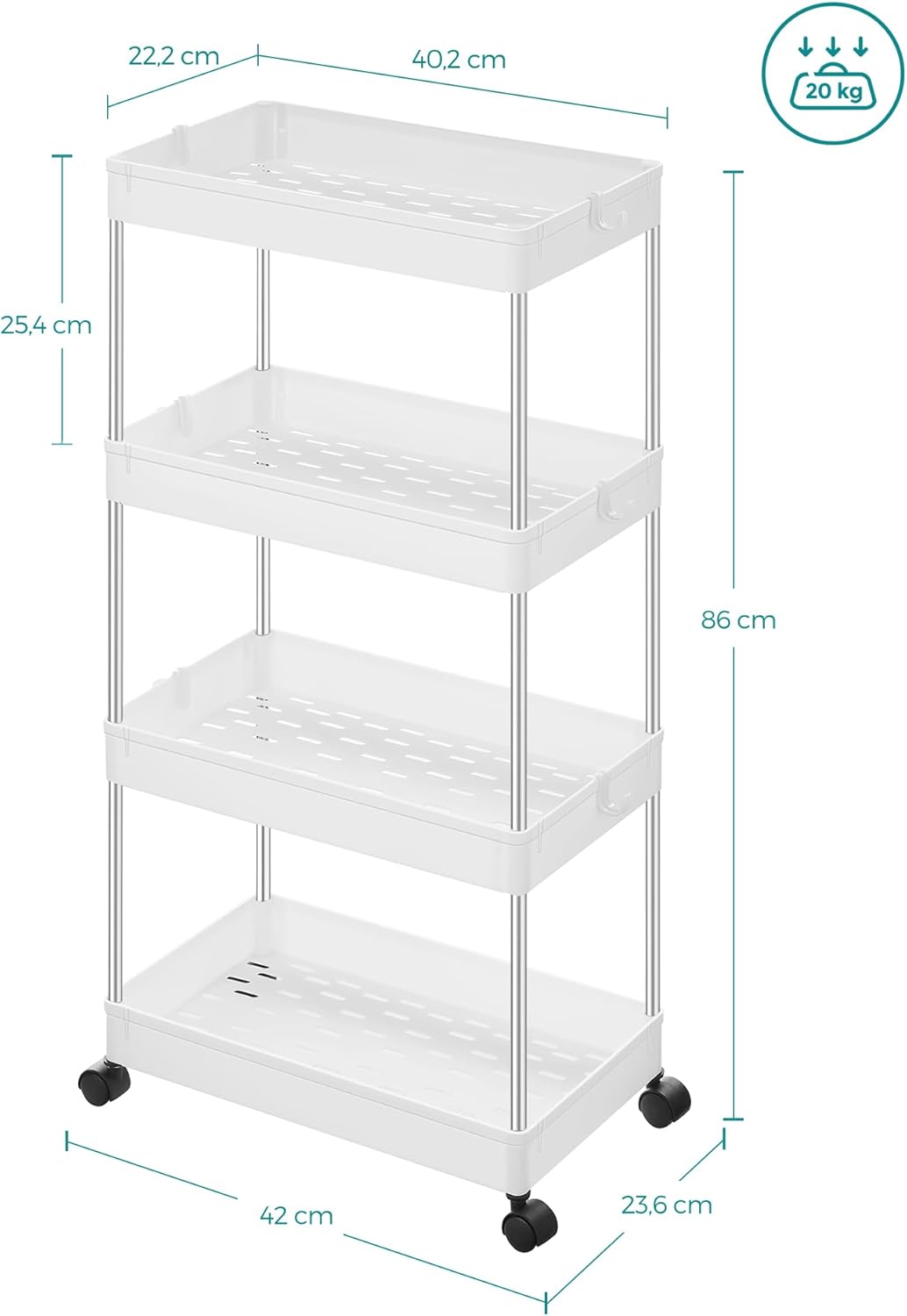 - [So werden Sie dem Chaos Herr!] In Ihrem Zuhause herrscht stets ein totales Chaos? Dann sollten Sie diesen 40 x 22 x 88 cm grossen Rollwagen ausprobieren. Mit 4 Regalebenen ausgestattet, hilft er Ihnen, all Ihre Badprodukte, Küchenutensilien oder
