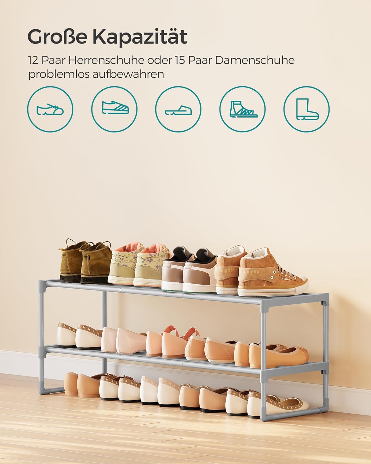 • Geräumig: Wenn Sie das 30 x 92 x 34 cm Regal umgedreht verwenden, bietet es Platz für bis zu 12 Paar Herrenschuhe oder 15 Paar Damenschuhe. Dank optimalem Abstand passen auch Stiefeletten hinein