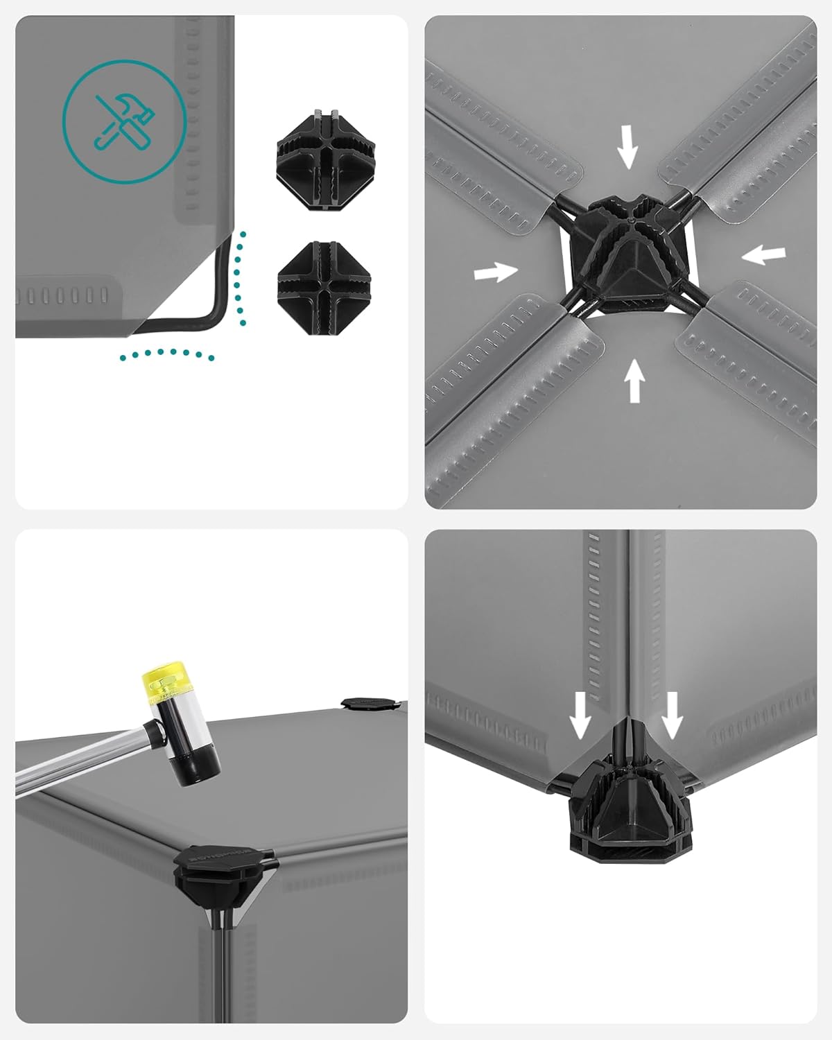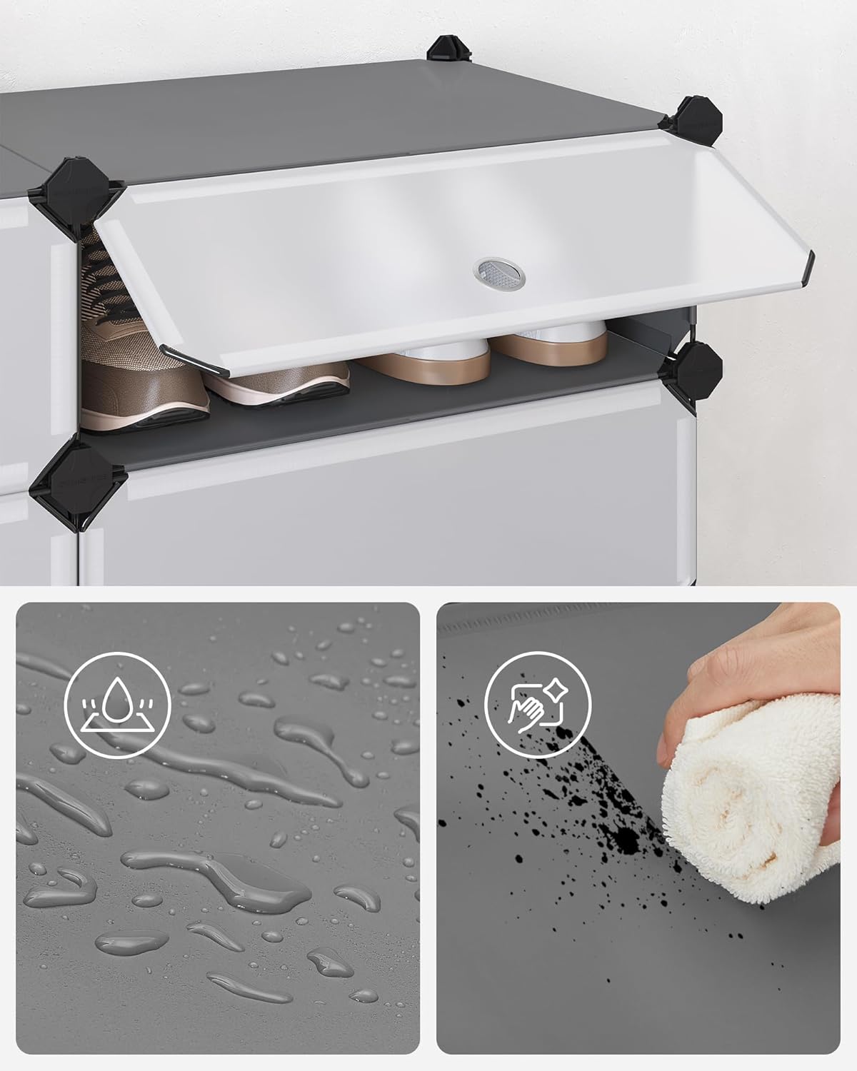 - 【GUTE QUALITÄT】Die hochwertigen PP-Kunststoffplatten sind geruchlos und robust. Zusammen mit dem Metallrahmen und den ABS-Kunststoffverbindungen kann jedes Fach bis zu 10 kg tragen. Es ist zudem wasserdicht und mit einem feuchten Tuch leicht zu