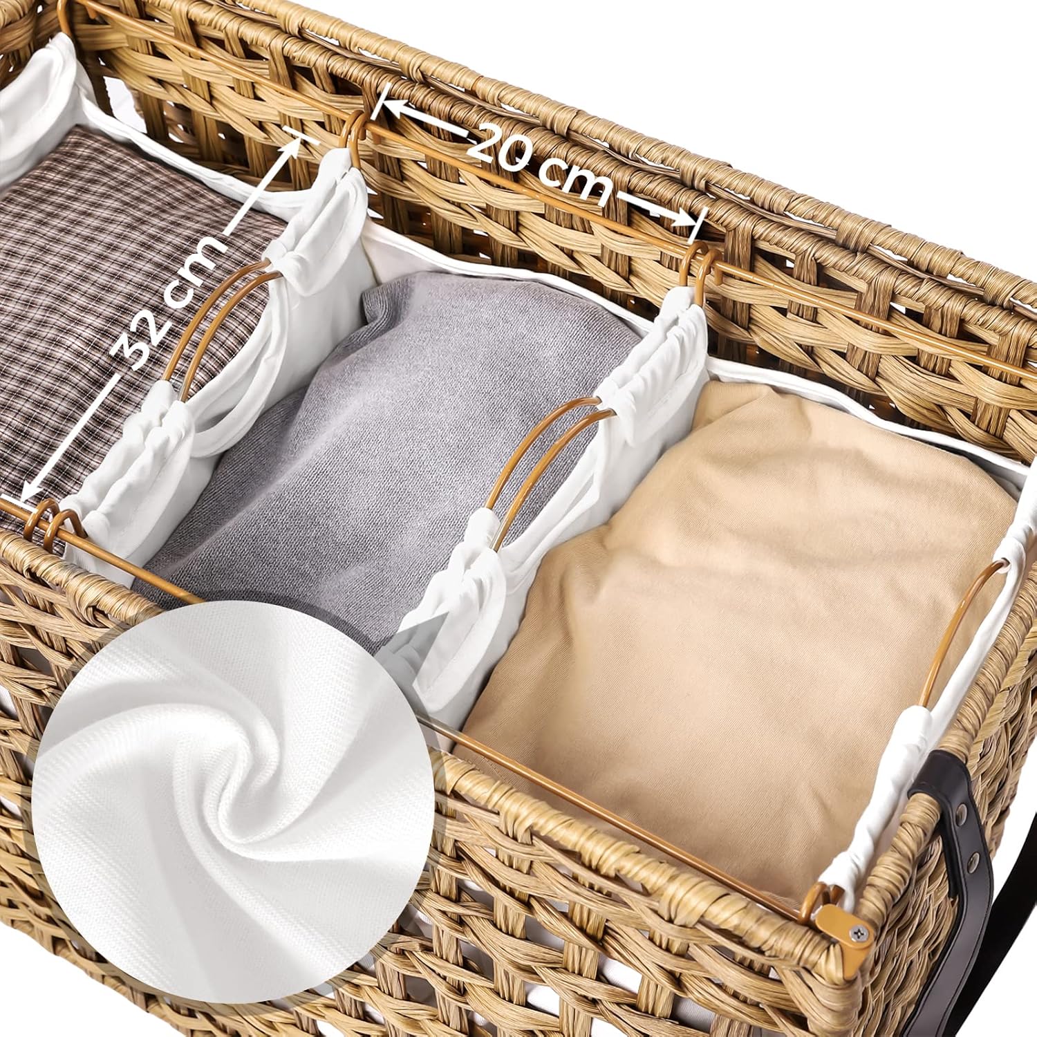 SONGMICS Wäschekorb, handgewebt, Wäschekorb, Rattanoptik, mobil, 3 Sortierfächer, Deckel, Griffe, ab