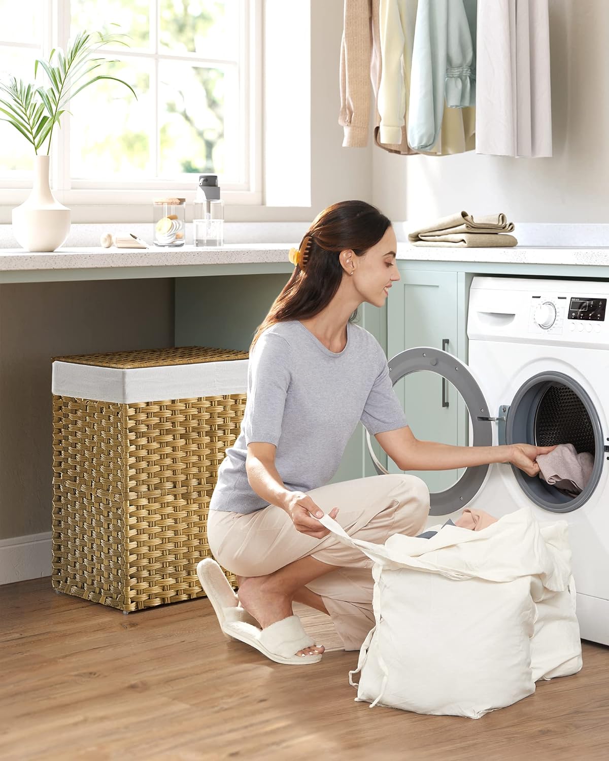 - [2 waschbare Innensäcke] Nehmen Sie den Stoffsack mit 2 Fächern heraus, bringen Sie ihn durch 2 praktische Griffe einfach zur Waschmaschine und ersetzen Sie ihn durch den anderen mitgelieferten Stoffsack. Die Stoffsäcke sind waschbar – für mehr