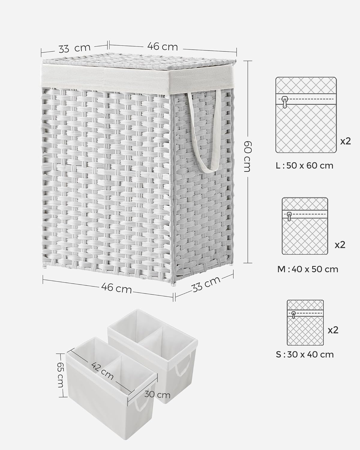 - [Grosse Kapazität] Dieser 33 x 46 x 60 cm grosse Wäschesortierer bietet Ihnen viel Stauraum (90 Liter), in dem die Wäsche der gesamten Woche Ihrer Familie Platz findet