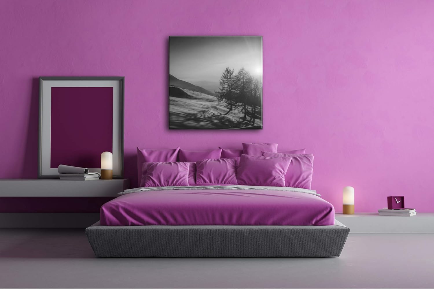 deyoli Sonnenaufgang in den schneebedeckten Bergen Format: 60x60 Effekt: Schwarz&Weiss als Leinwandb