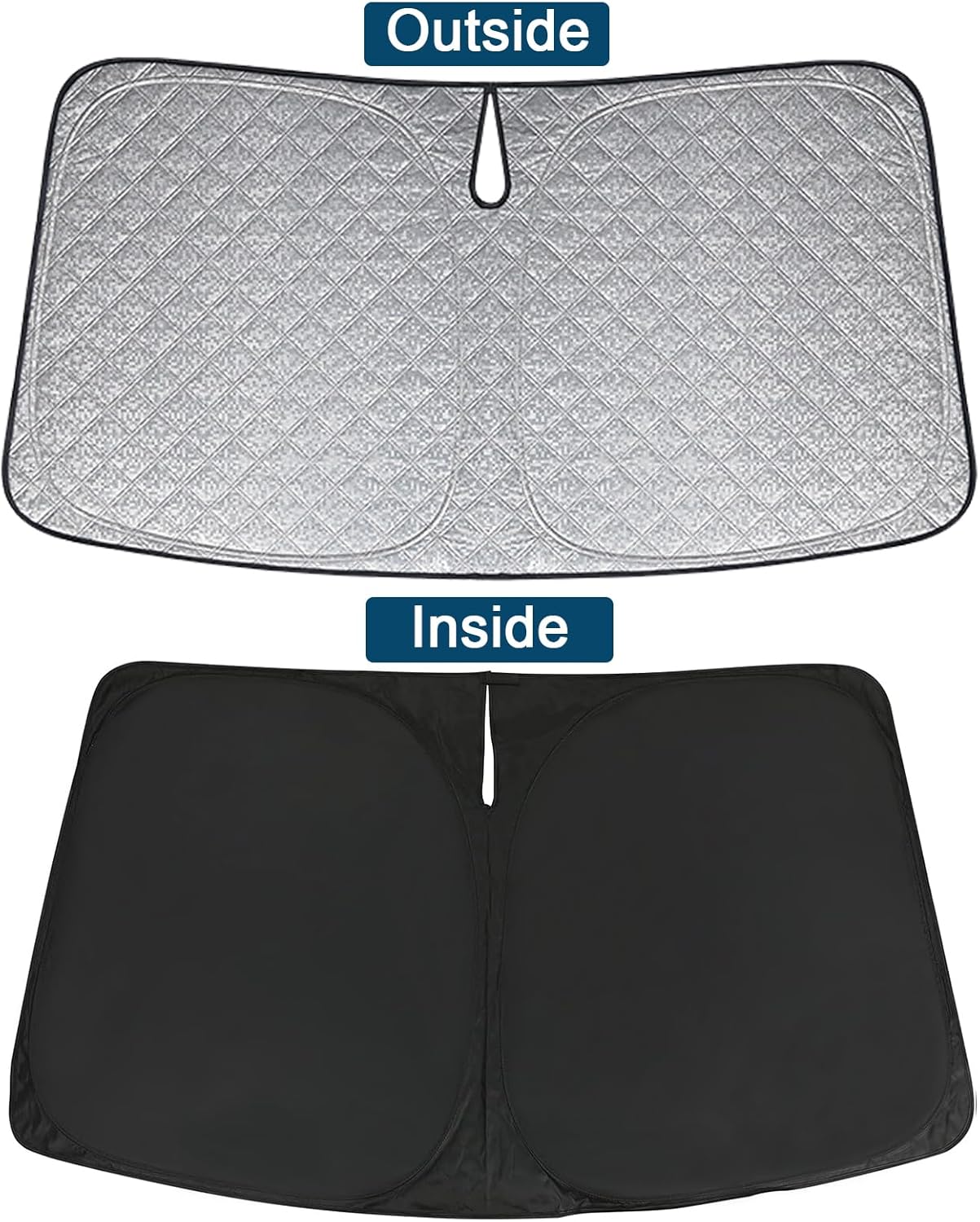 - [Hochwertige Materialien] Polyestermaterial, halten Sie die Temperatur im Auto, halten Sie Ihren Autositz kühl und verbrennen Sie sich nicht die Hände am Lenkrad. Die Windschutzscheiben-Sonnenblende schützt das Innenleder und das Armaturenbrett vor