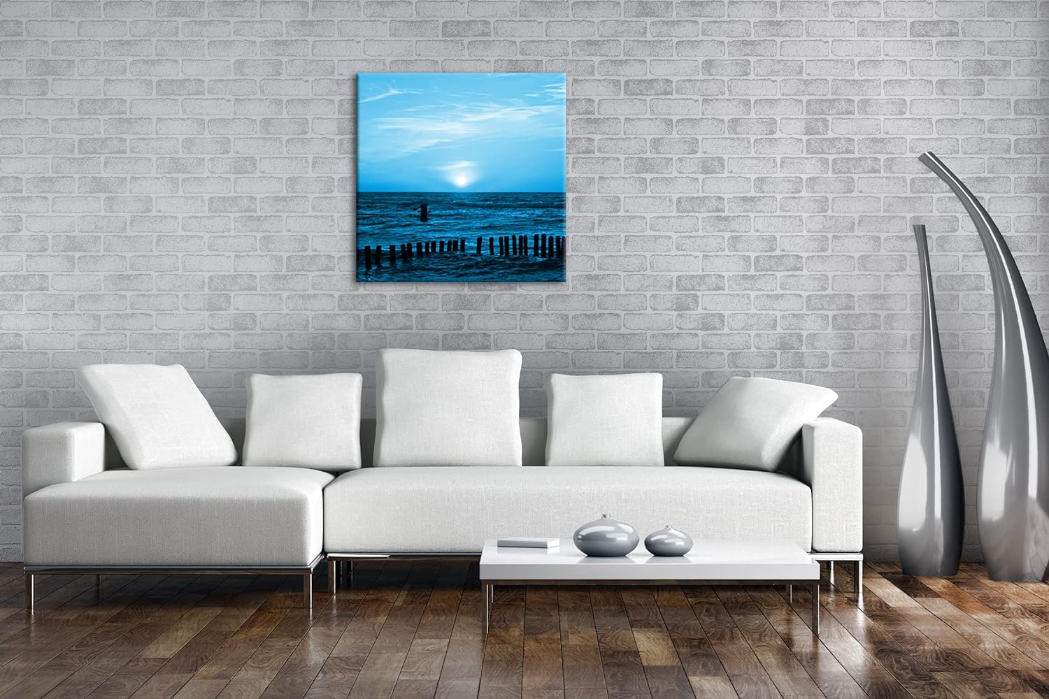 Sonnenuntergang an der Ostsee im Format: 60x60 Effekt: Zeichnung als Leinwandbild, Motiv auf Echthol