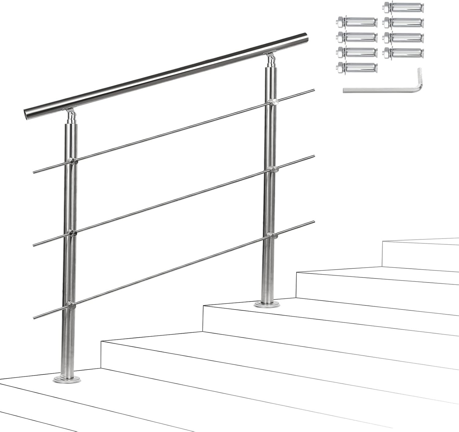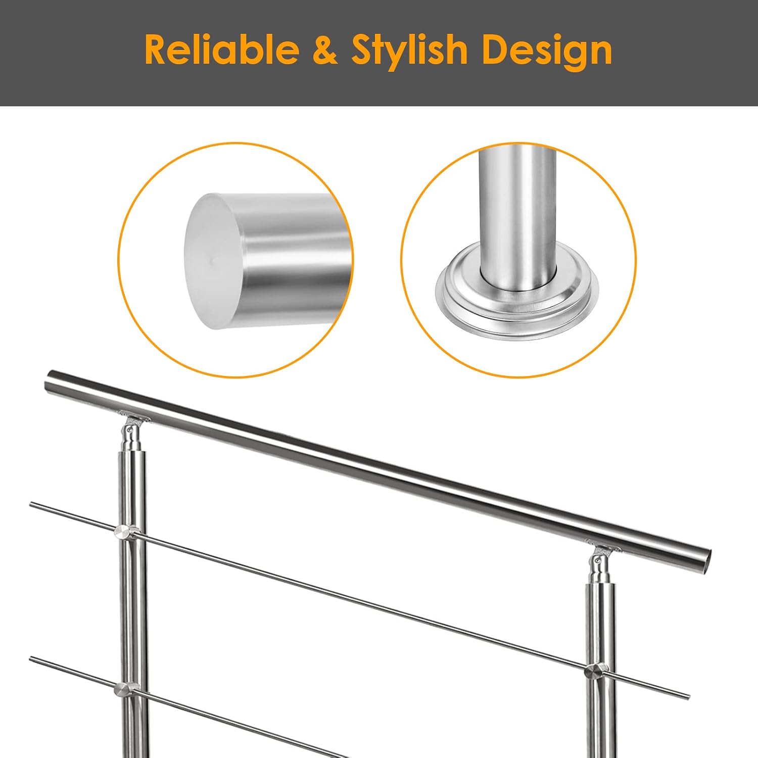 - 🔨ROBUST MATERIAL:Die leicht gebürstete Oberfläche des Materials sorgt für eine edle Optik. Handlaufenden sauber. Querstreben besteht aus Edelstahl Vollmaterial (Stangen).