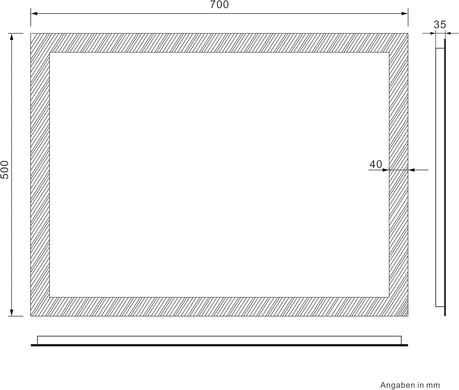 - Grösse: Länge: 50 cm Breite: 70 cm Gesamttiefe: 3,5 cm, Warmweiss (3000K)