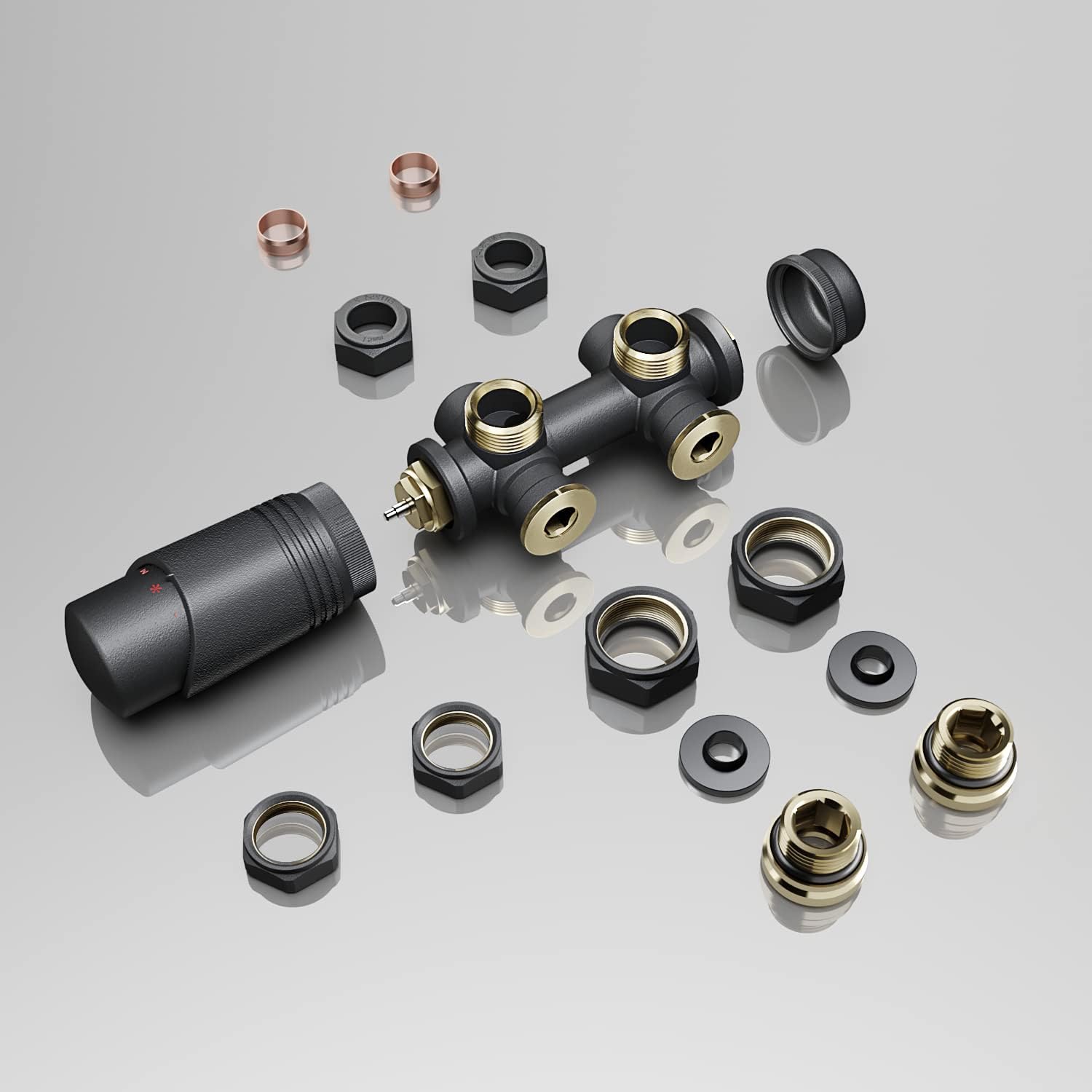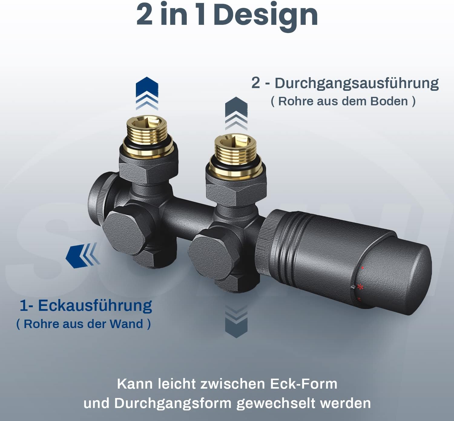 - Zweirohr-Armartur für alle 50mm-Mittelaschlüsse, Anschlussgewinde G 1/2"