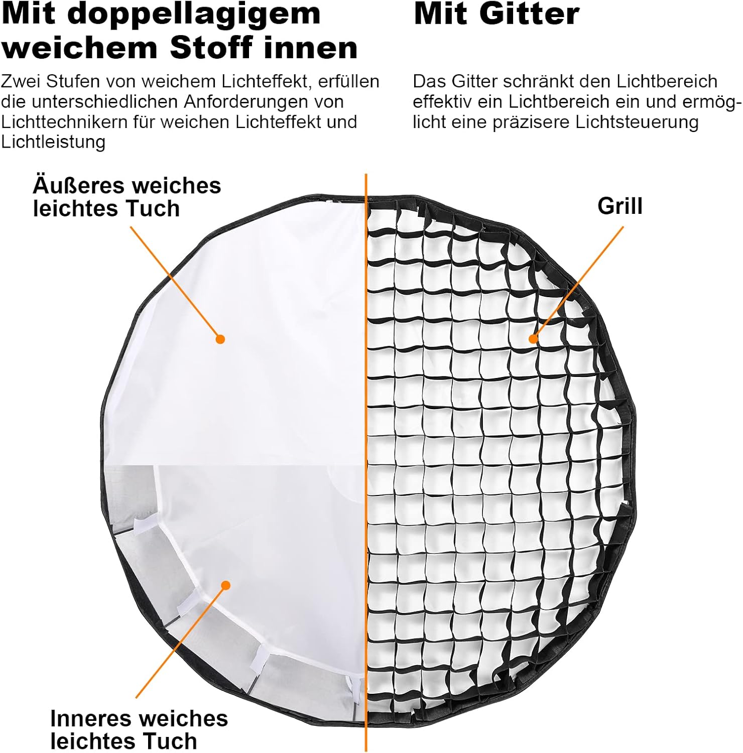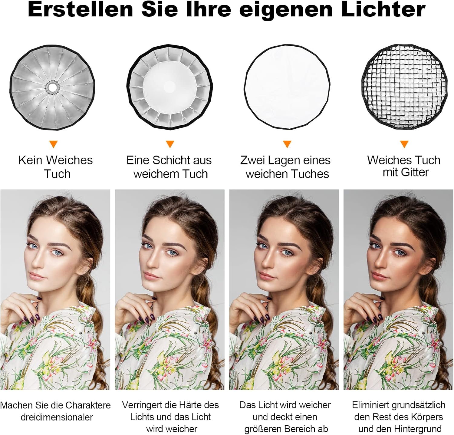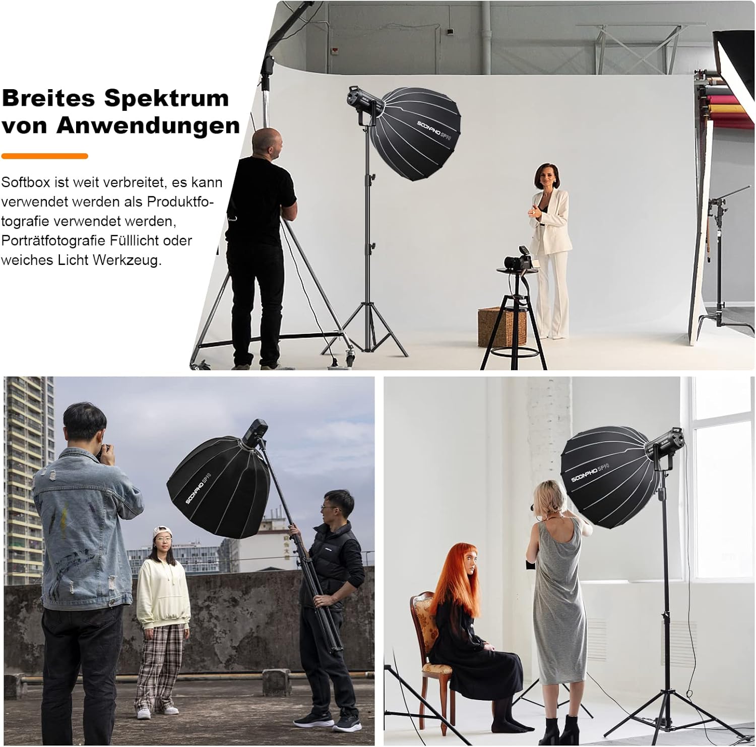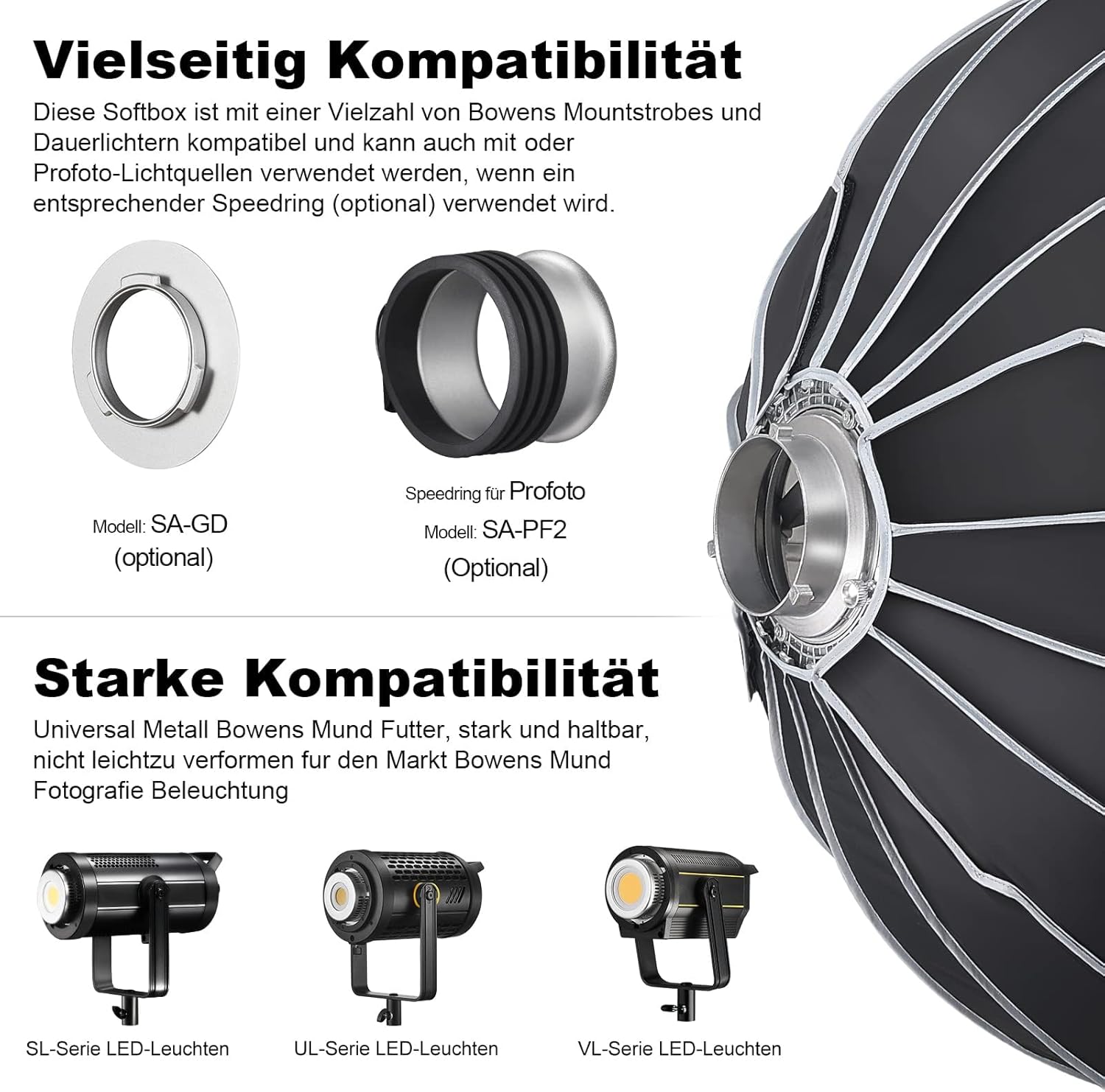 - 💚【 SOONPHO SP Softbox-Serie Leistungsstarke Vielseitige Kompatibilität】SOONPHO Deep Parabolic Softboxen provides unique and multi-angle lighting source; Also creates the soft diffused lighting effect what is needed within large area.Great depth,