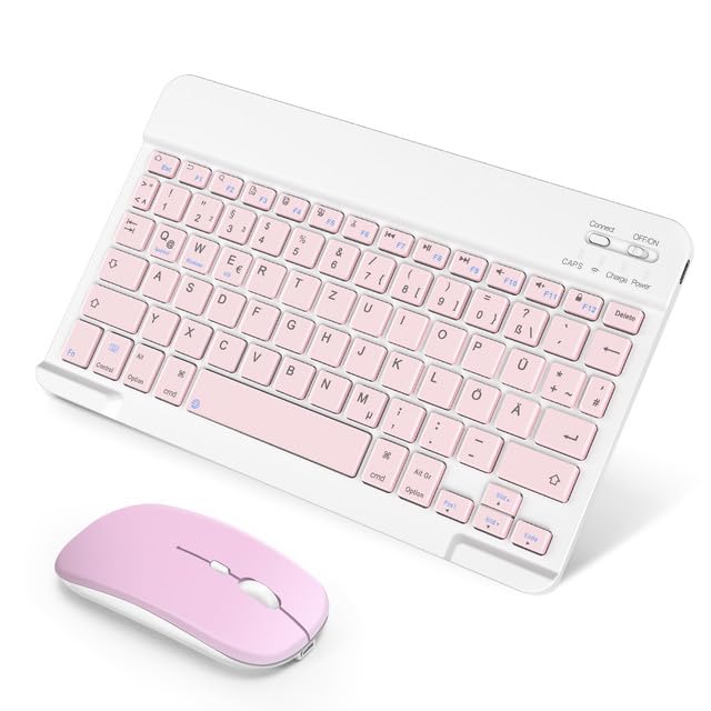 - đăWiederaufladbare Bluetooth-Tastatur & MausăEingebauter Premium-Lithium-Ionen-Akku mit Energiesparmodus, ermöglicht bei voller Ladung mindestens 30 Stunden Dauerbetrieb. Mit der intelligenten automatischen Ruhefunktion zum Energiesparen wechselt