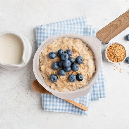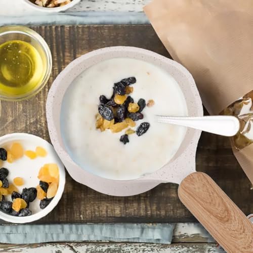 - [Weisses Design]: Die weisse Farbe des antihaftbeschichteten kleinen Topfes strahlt ein sauberes und erfrischendes Aussehen aus und schafft ein komfortables und gemütliches Gefühl in Ihrer Küche.