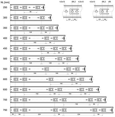 - Länge: 400 mm / Höhe: 45 mm / Breite: 12,7 mm / Tragfähigkeit: bis 45 Kg (pro Paar)