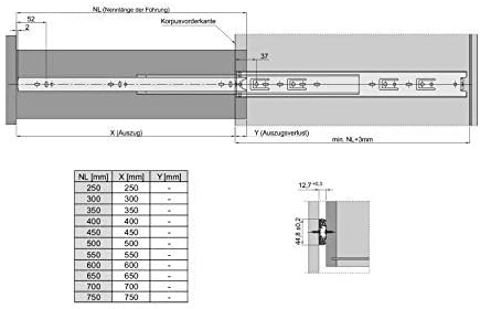 - Hochwertige kugelgelagerte Führungsschiene aus Stahl mit schwarzer Oberfläche