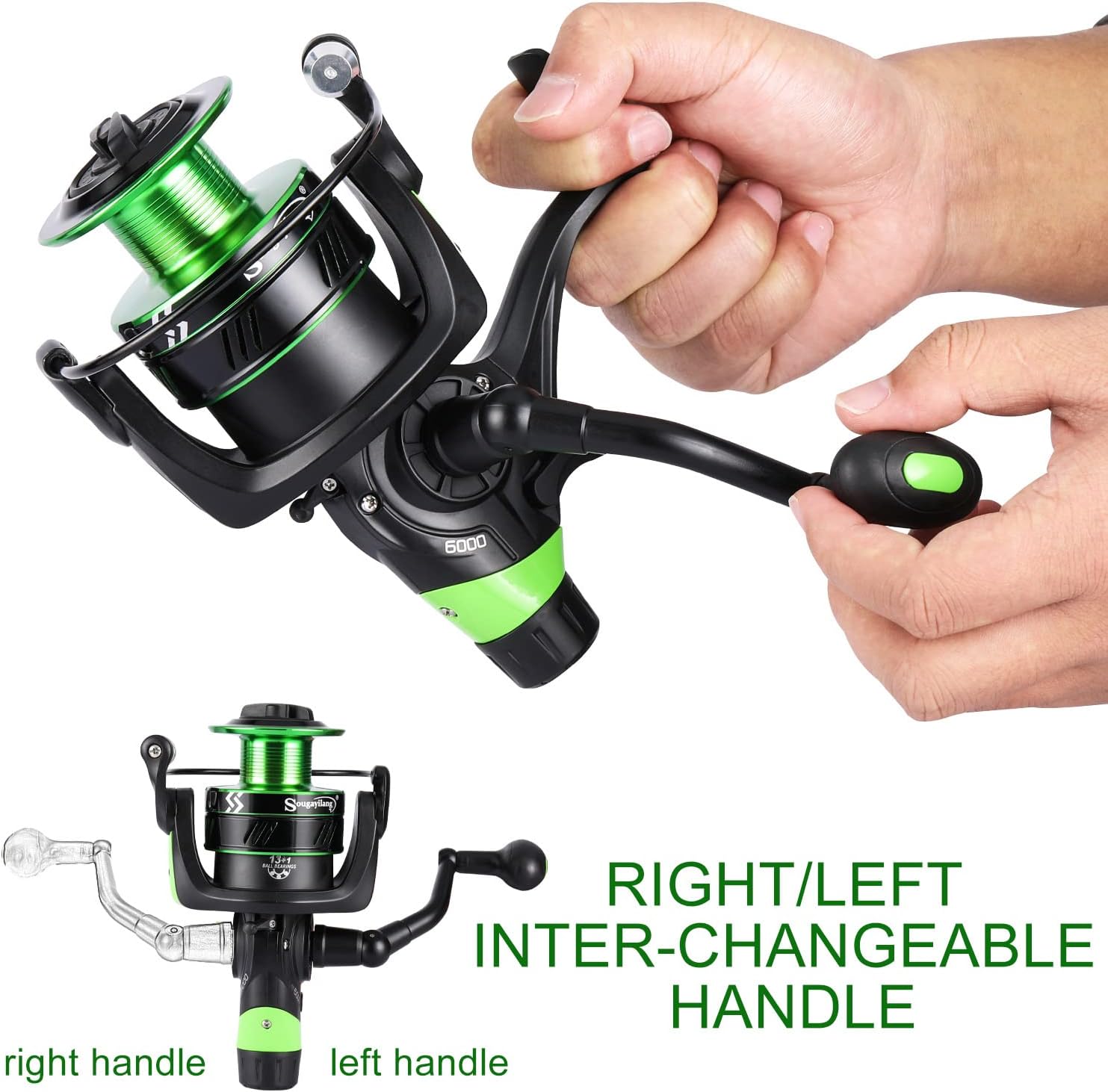 - Zusätzliche Spule - Die Sougayilang Karpfenrollen verfügen über eine zusätzliche Spule, die Ihnen eine zusätzliche Option bietet und ausgestattet ist. Decken Sie Ihre unterschiedlichen Angelbedürfnisse ab. HINWEIS: Aktivieren Sie die Heckbremse,