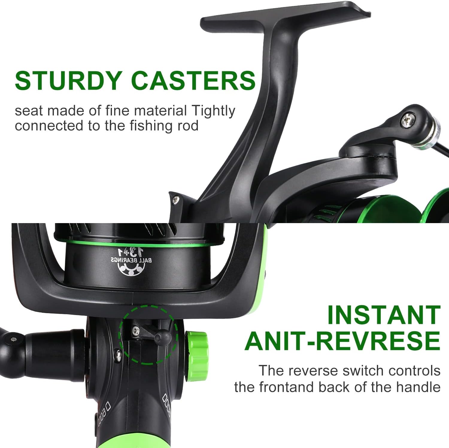 - Leistungsstark - Der Hauptkörper und der Rotor der Köder-Futterspinnrollen bestehen aus Graphit mit einem starken Bremssystem, das bis zu 23 lbs/10,5 kg Bremskraft bietet. Die vorderen und hinteren Doppelbremsen bieten Ihnen eine stärkere