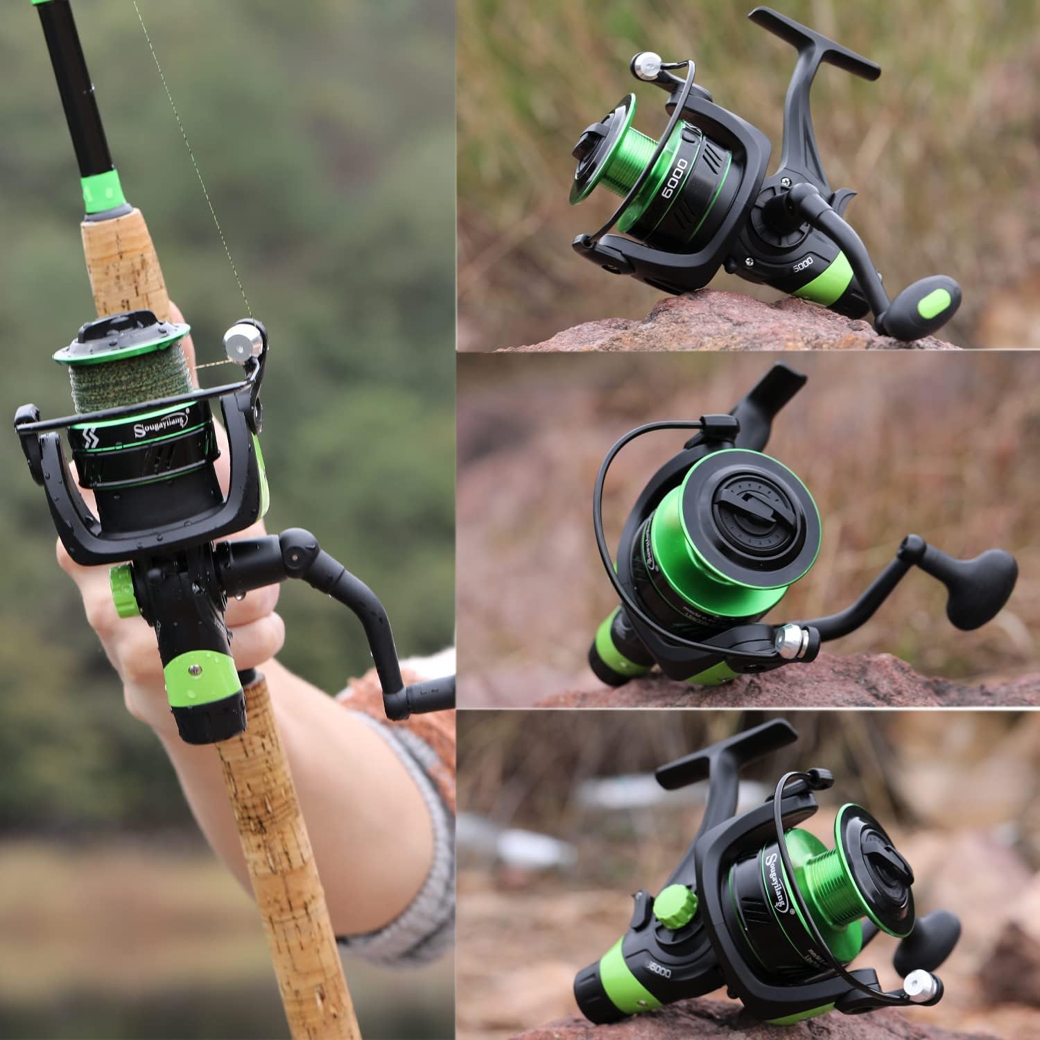• Zusätzliche Spule - Die Sougayilang Karpfenrollen verfügen über eine zusätzliche Spule, die Ihnen eine zusätzliche Option bietet und ausgestattet ist. Decken Sie Ihre unterschiedlichen Angelbedürfnisse ab. HINWEIS: Aktivieren Sie die Heckbremse,