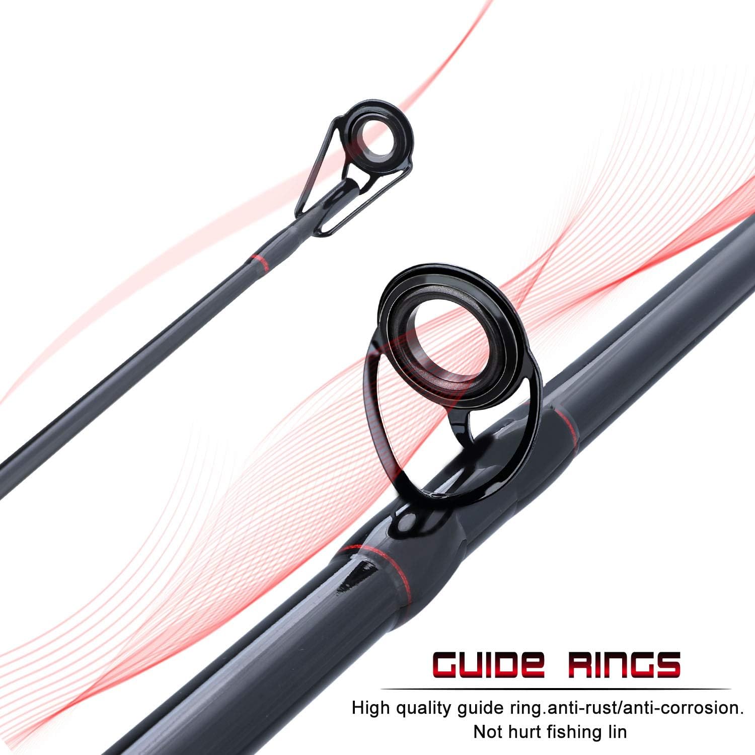 • Hochwertige Führungen: Der Führungsring aus Keramik macht es glatter und langlebiger, minimiert die Reibung für glatte und lange Würfe und verbessert gleichzeitig die Empfindlichkeit, indem er Vibrationen von der Schnur durch die Führung auf die