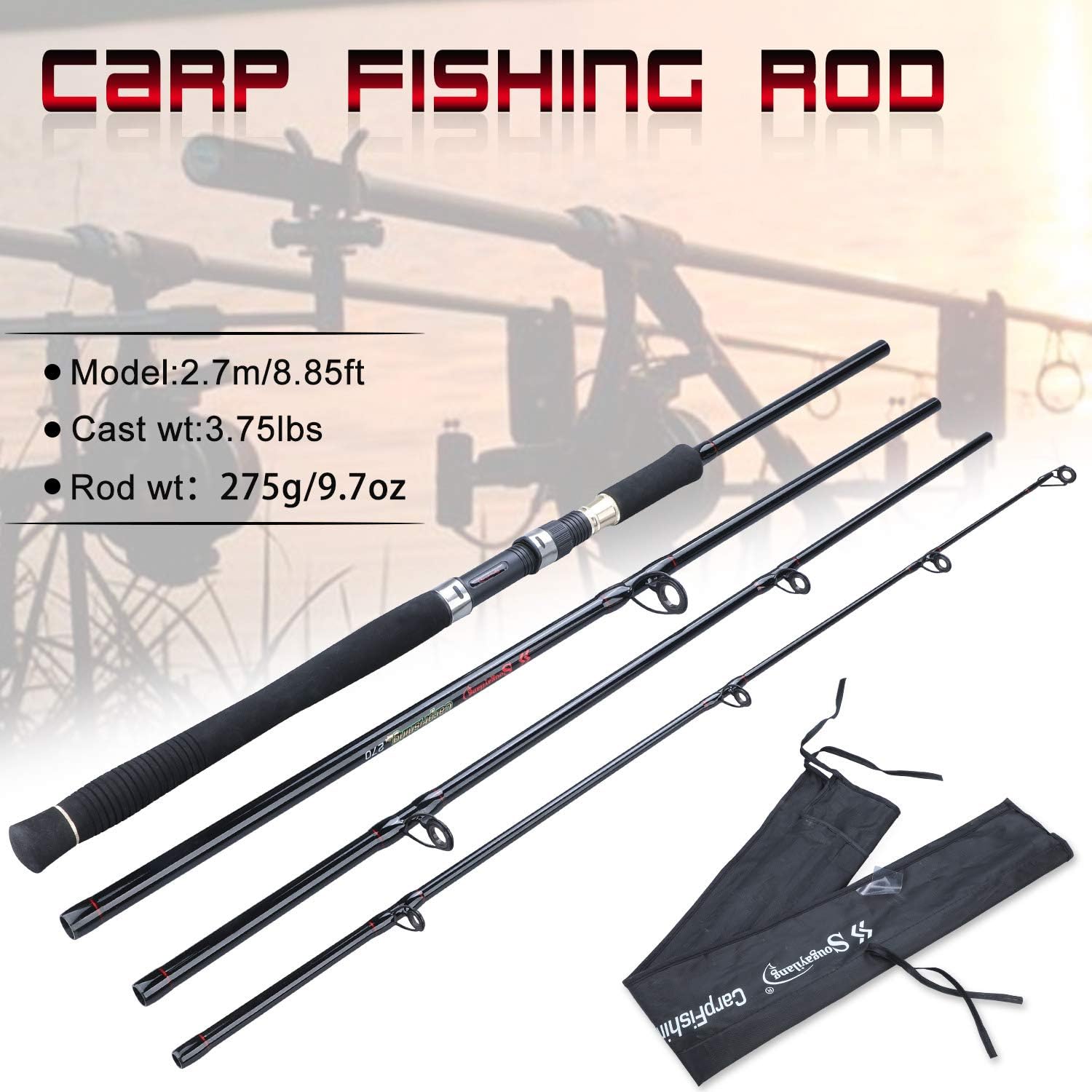 Sougayilang Angelrute für Karpfen, Angelrute aus Kohlefaser, super hart, 4/5 Abschnitte, tragbare An