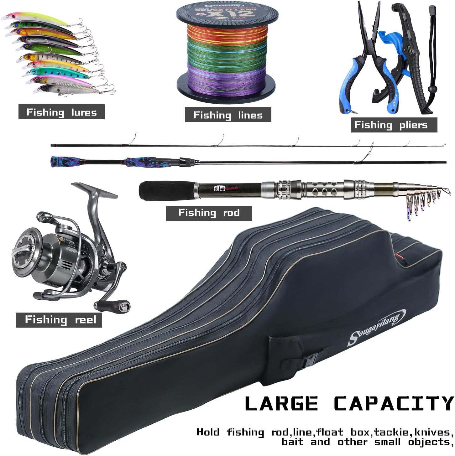 • Tragbares Design - Mit zwei Handgurten und einem vollständig verstellbaren Schultergurt können Sie Ihre Ausrüstungstasche und Angelgerättasche überallhin mitnehmen. Hervorragende Funktion, Schützen Sie Ihre Angelrute vor versehentlichen