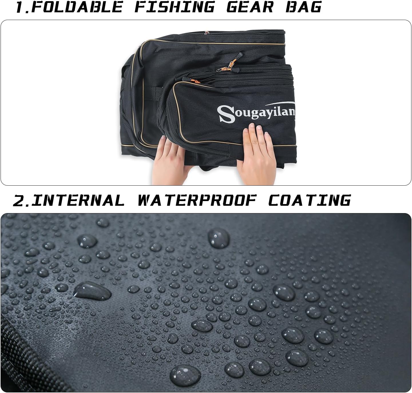 Sougayilang Angelruten-Tasche - 3-lagige Faltbare und tragbare Angelruten-Tasche für grosse Kapazitä