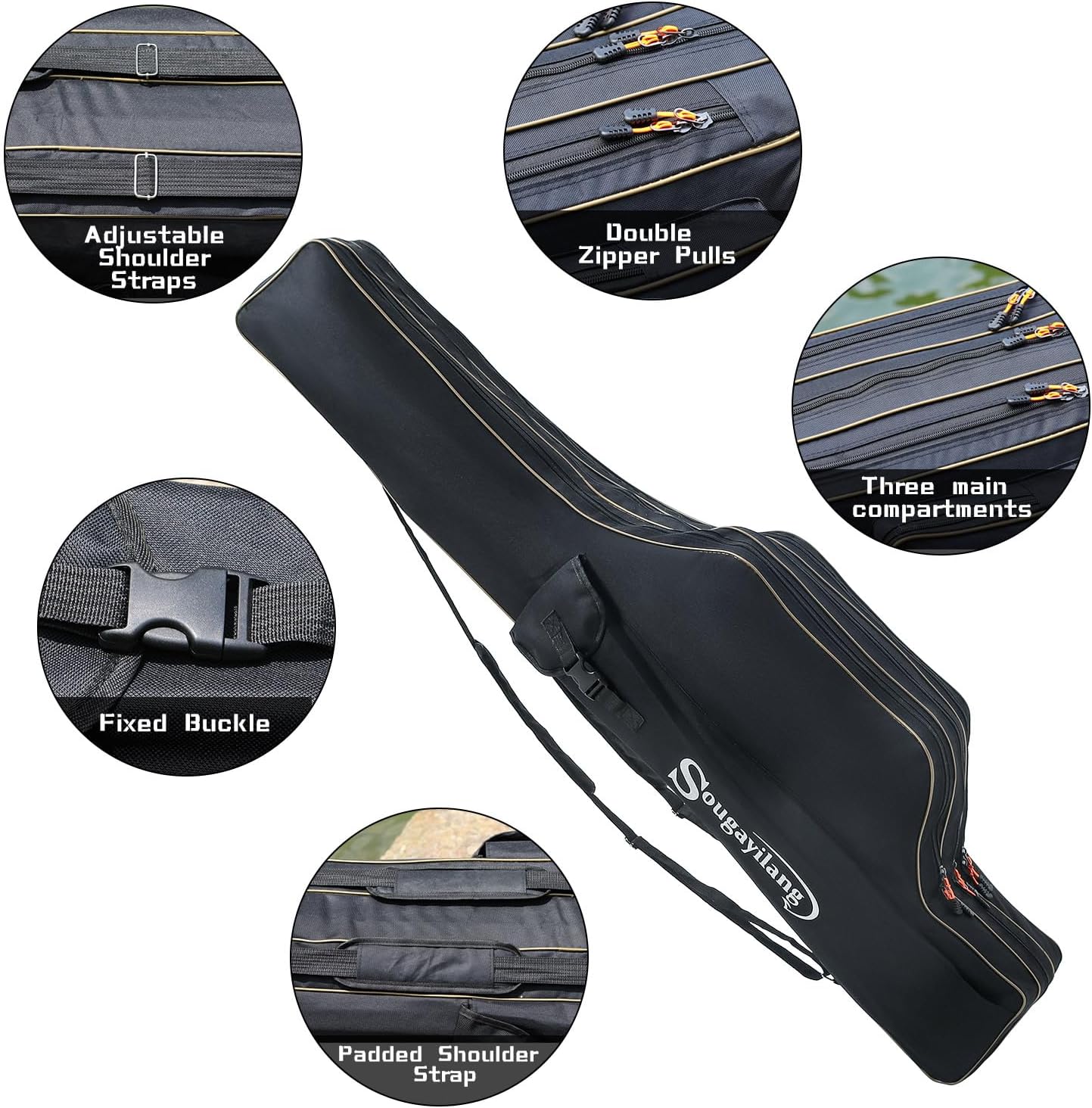 • Robustes Material - Hergestellt aus hochwertigem Oxford-Gewebe, das Feuchtigkeit, Kratzern und Rissen widerstehen kann. Verstärkte Paspeln für zusätzliche Haltbarkeit. Einfacher Zugriff, Jede Schicht mit 2 Riemen, um Ihre Rute sicher zu halten.