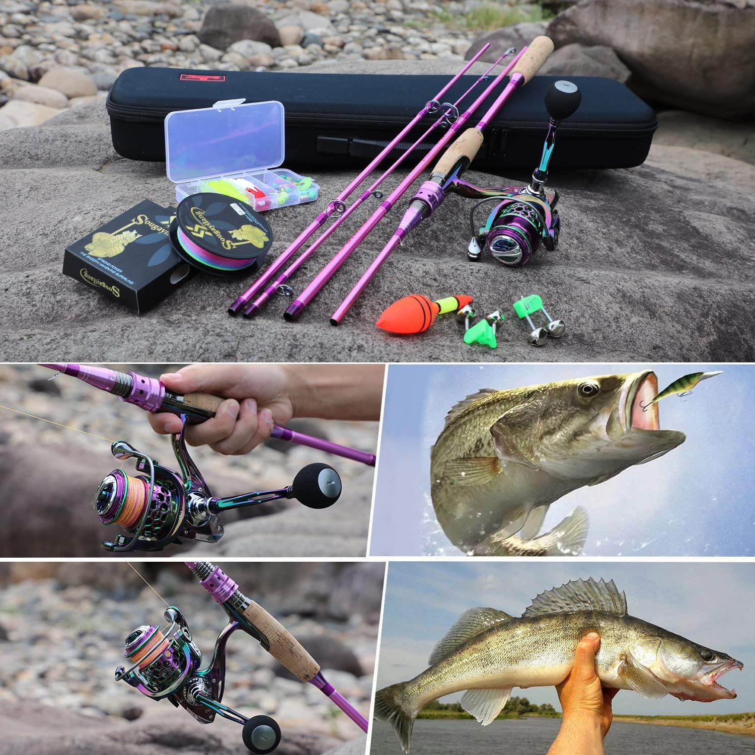 - EINFACH UND TRAGBAR: Die Angelrute ist geknotet, aus Kohlefaser, ultraleicht, leicht zu tragen, f¨¹r Reisen geeignet, 4-teilige Rute und leicht zu zerlegen, Sie werden nicht m¨¹de vom Angeln. Die Sougayilang-Spinnruten-Rollenkombination ist eine gro?artige Wahl f¨¹r leichtere S¨¹?wasseranwendungen. Ideal f¨¹r Wildfische einschlie?lich S¨¹?wasserfische wie Barsch, Zander, Forelle sowie beliebte K¨¹stenarten wie Rotbarsch.