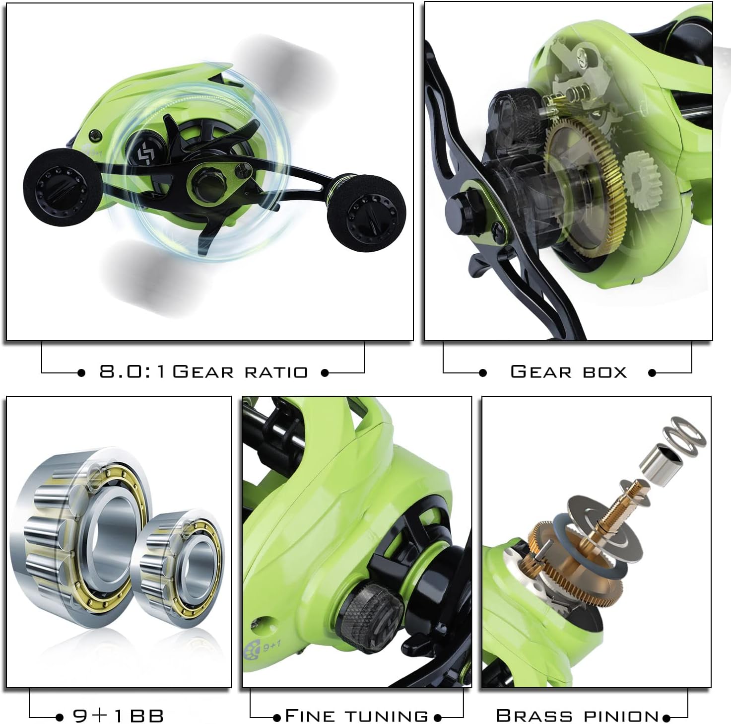 - Au?ergew?hnliche Baitcasting-Rollen - Sougayilang Baitcasting-Rolle mit 8,0:1 glattem Hochgeschwindigkeitsverh?ltnis, 9+1 Edelstahllagern und 10 hochfesten Magnetbremsen. Die obere Konfiguration hilft Ihnen, mit den gro?en Fischen bis zu 18 Pfund zu