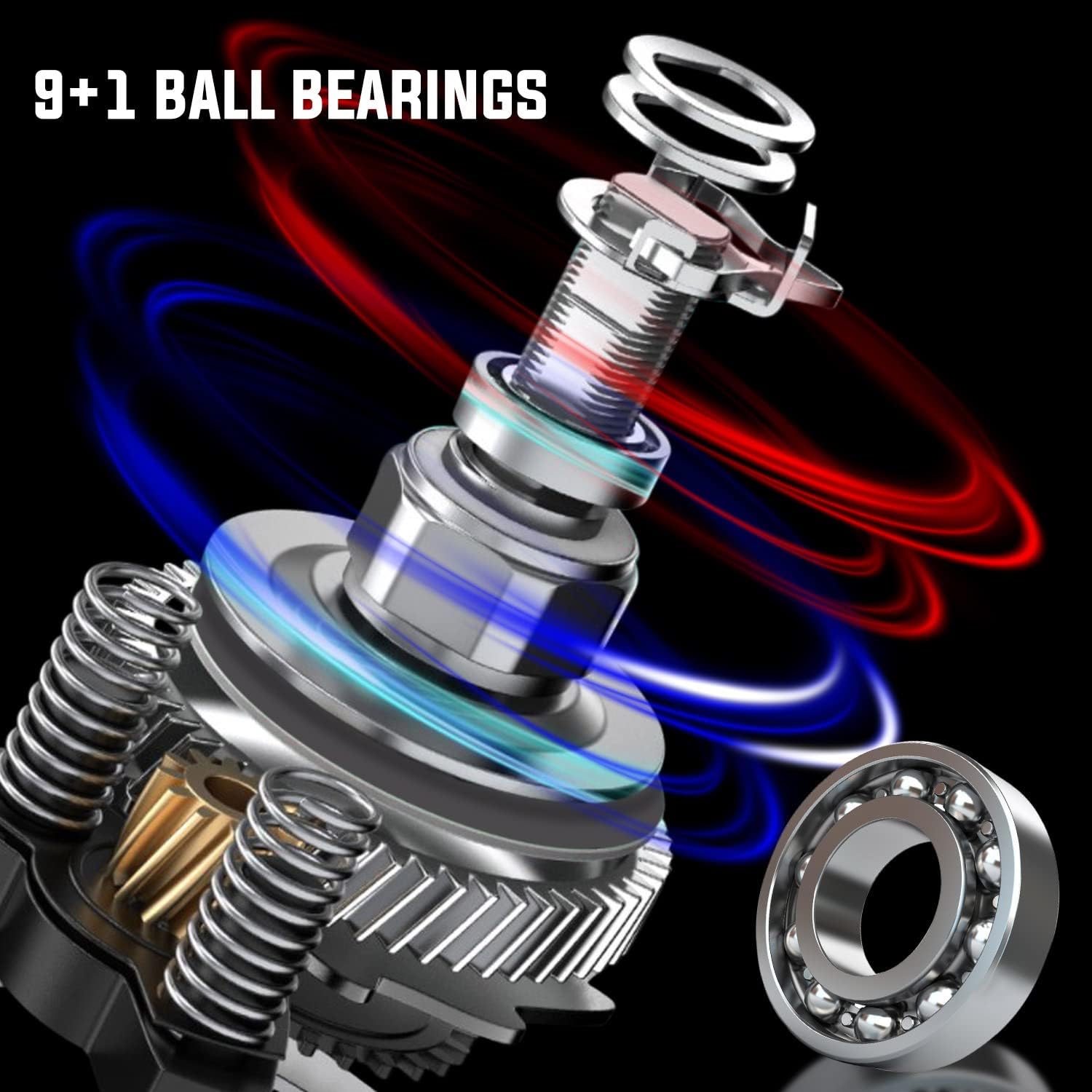 - Magnetische Cast-Kontrolle – CB200 Baitcastrollen sind mit 9 abgeschirmten, hochwertigen Edelstahl-Kugellagern und einem sofortigen Anti-Reverse-Lager ausgestattet. Die CB200 Cast-Rolle verwendet ein bewährtes magnetisches Bremssystem, das über 10