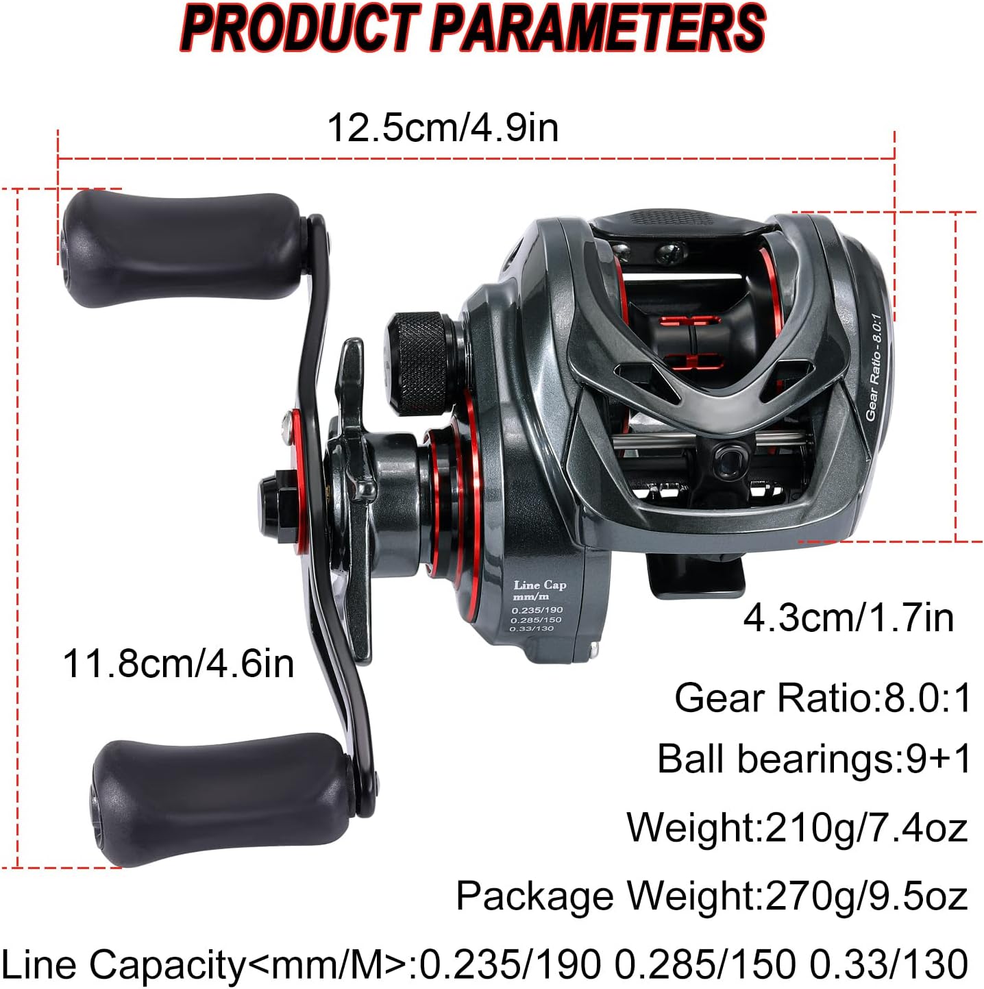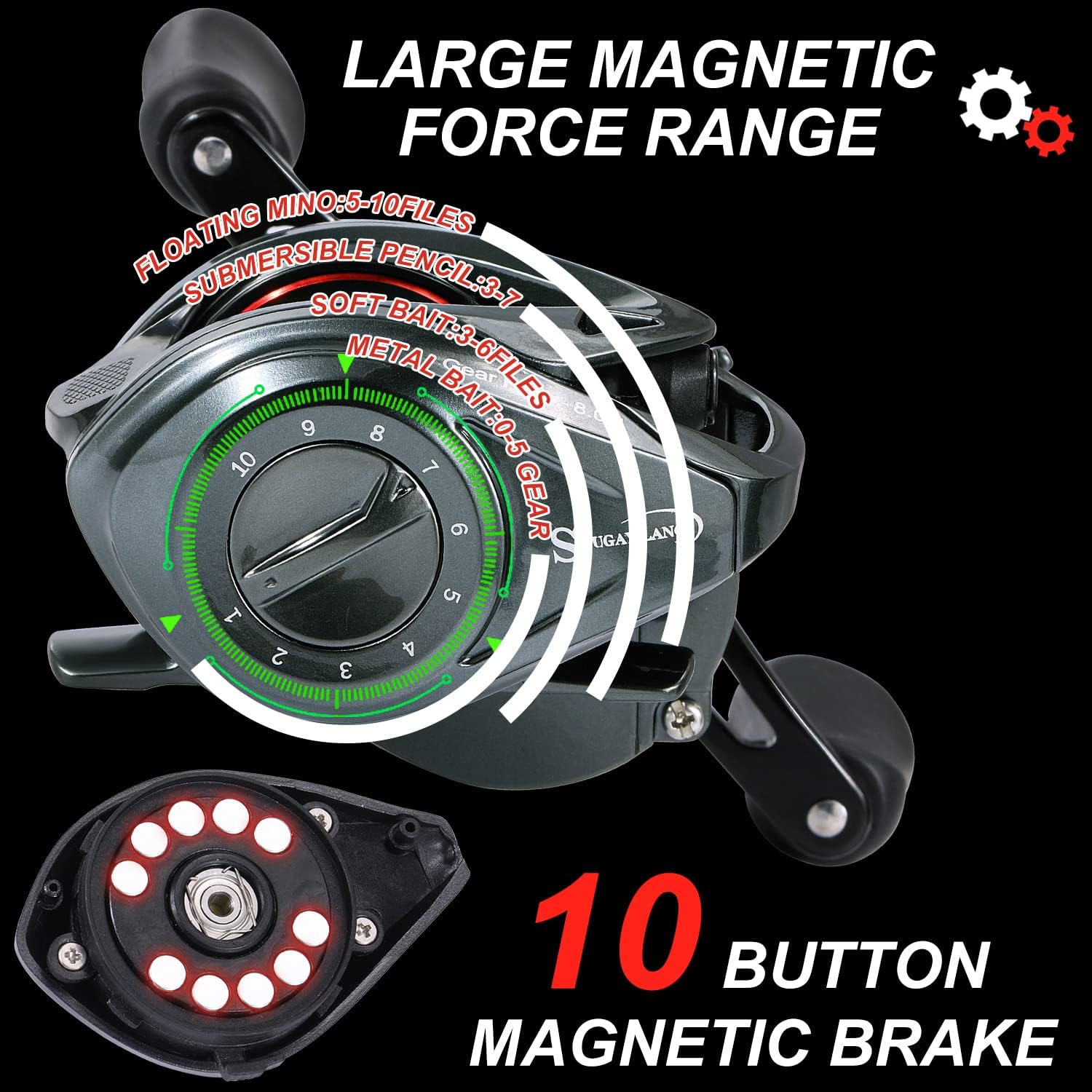 • Dual Brake System: Dynamische Zentrifugalbremse und 10-präzise Magnetbremsen sorgen für turnierfertige Anpassungen. Das Dual Brake System bietet präzisere Anpassungen, die das Spiel effektiv reduzieren können. MAX Baitcasting angelrollen Es kann 18lbs Schleppkraft zur Verfügung stellen, um grosse Fische zu gewinnen.