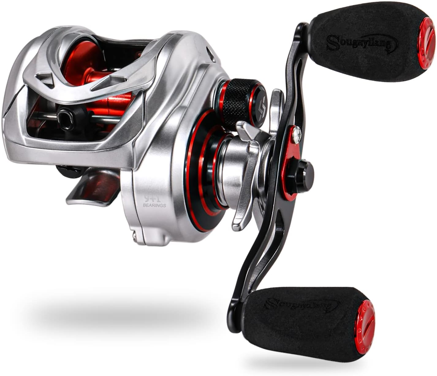 • Innovatives Design: Die Sougayilang MAX Low Profile Baitcast-Rolle hat ein matt-silbernes Gehäuse mit schwarzem Griff und roten Schnur-Akzenten für einen stilvollen Look - eine gute Wahl für Ihre nächste Rolle.