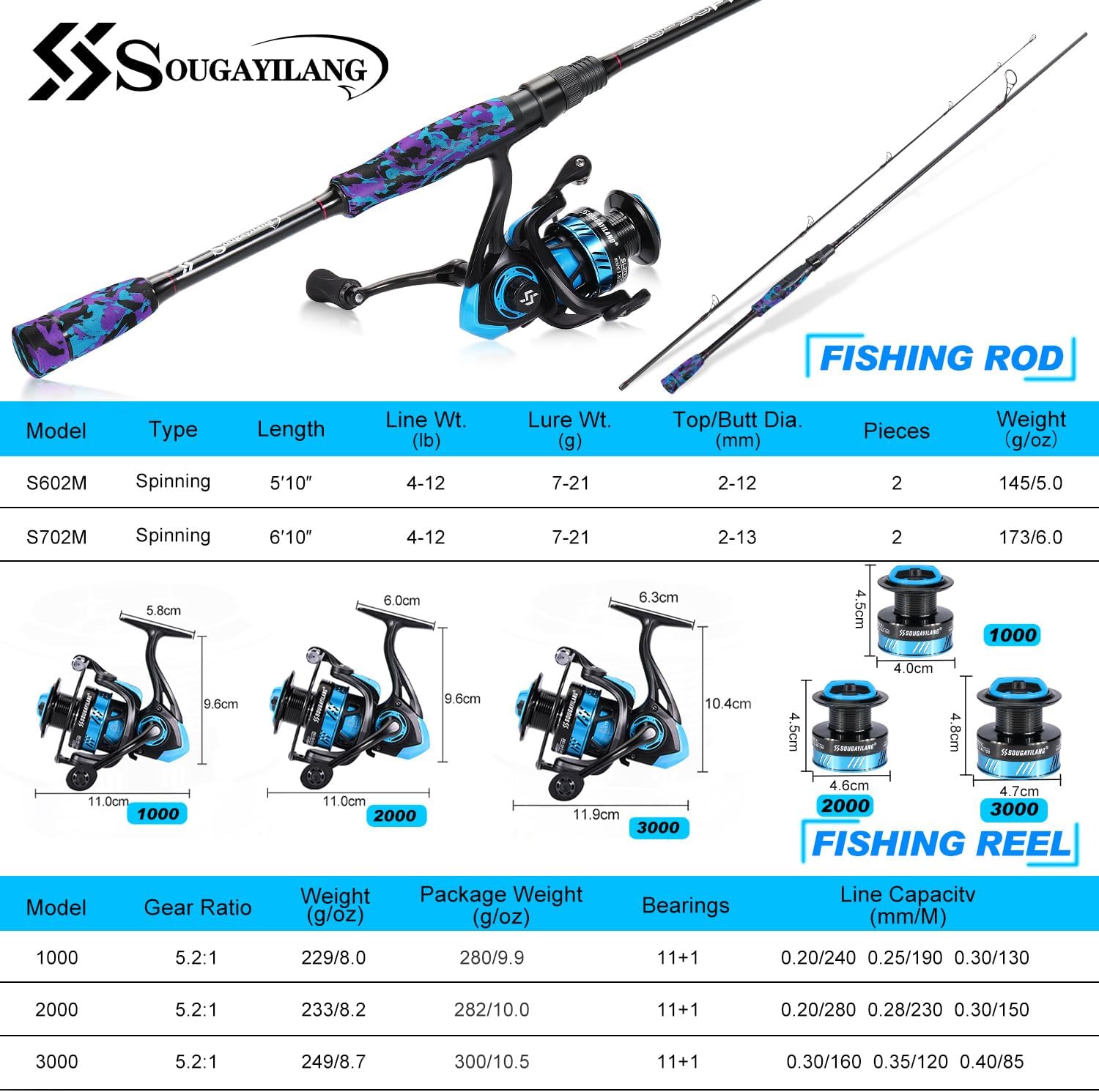 - Dieses hochwertige Spinnset mit 2 Teilen ist in 2 verschiedenen Längen erhältlich. Es gibt eine Länge von 180 cm und eine Länge von 210 cm mit einem Wurfgewicht von 7-21 g, was perfekt zum Angeln mit verschiedenen natürlichen Ködern oder