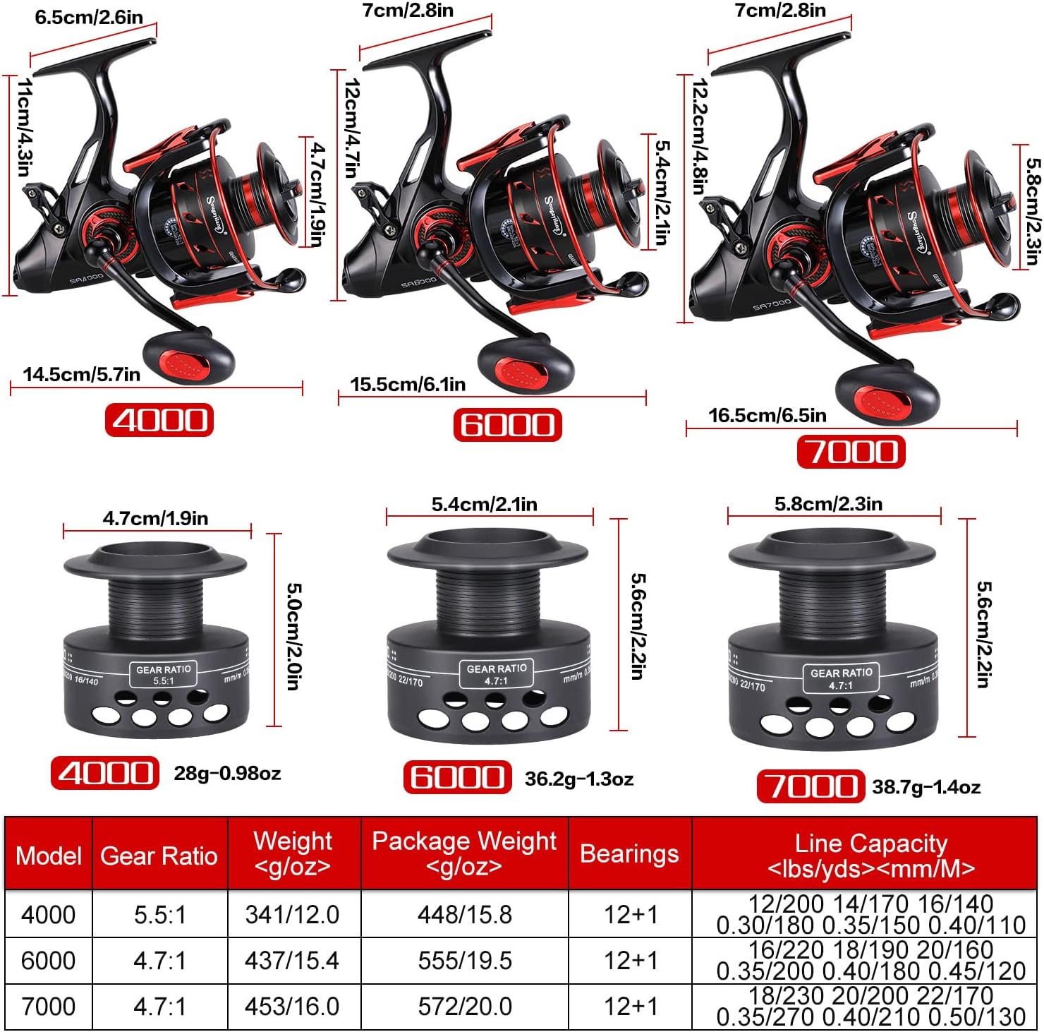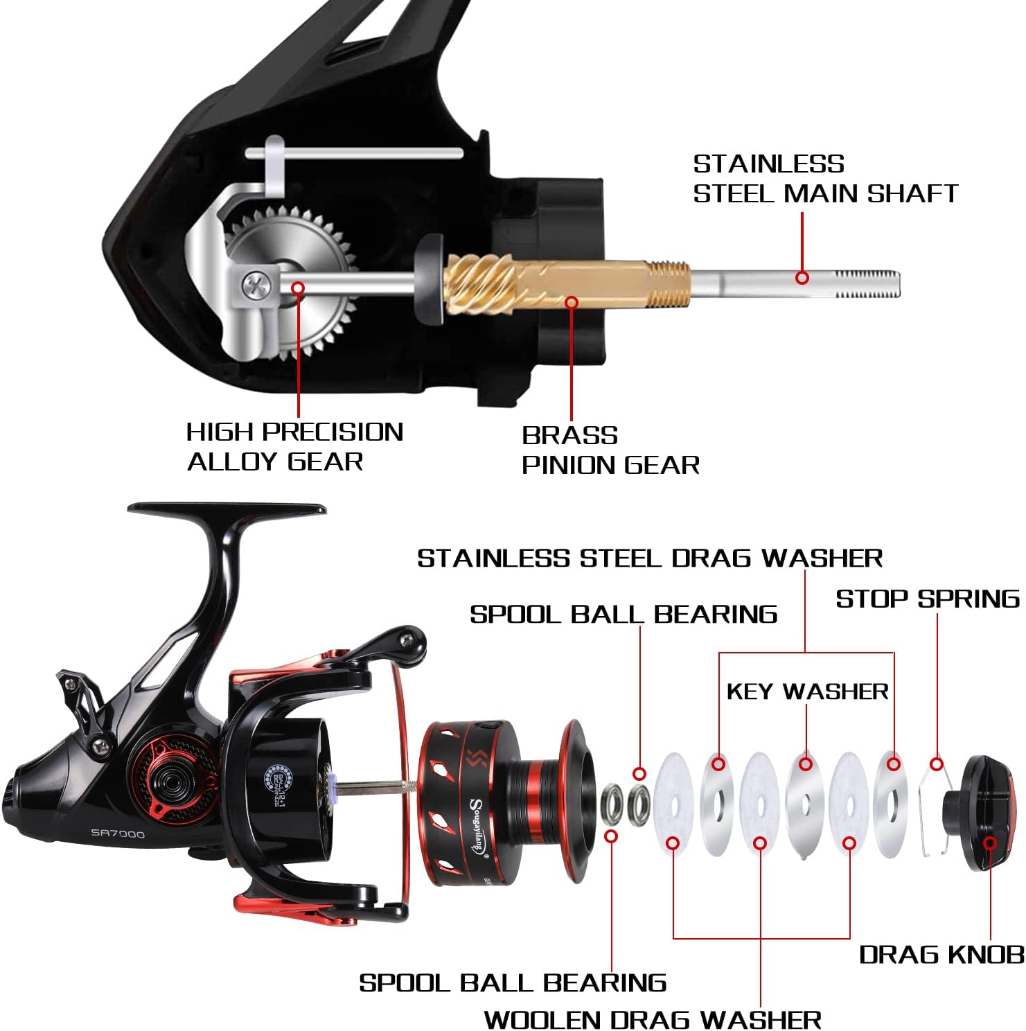 - AUSSERGEWÖHNLICH GESCHWINDIG - Die Karpfenrolle Sougayilang SA verfügt über ein dreilagiges Karbonfasersystem, das Ihnen die bestmögliche Bremse für leichte Angelschnüre bietet. Die Aluminiumspule sorgt für einen reibungslosen Schnurauswurf, damit