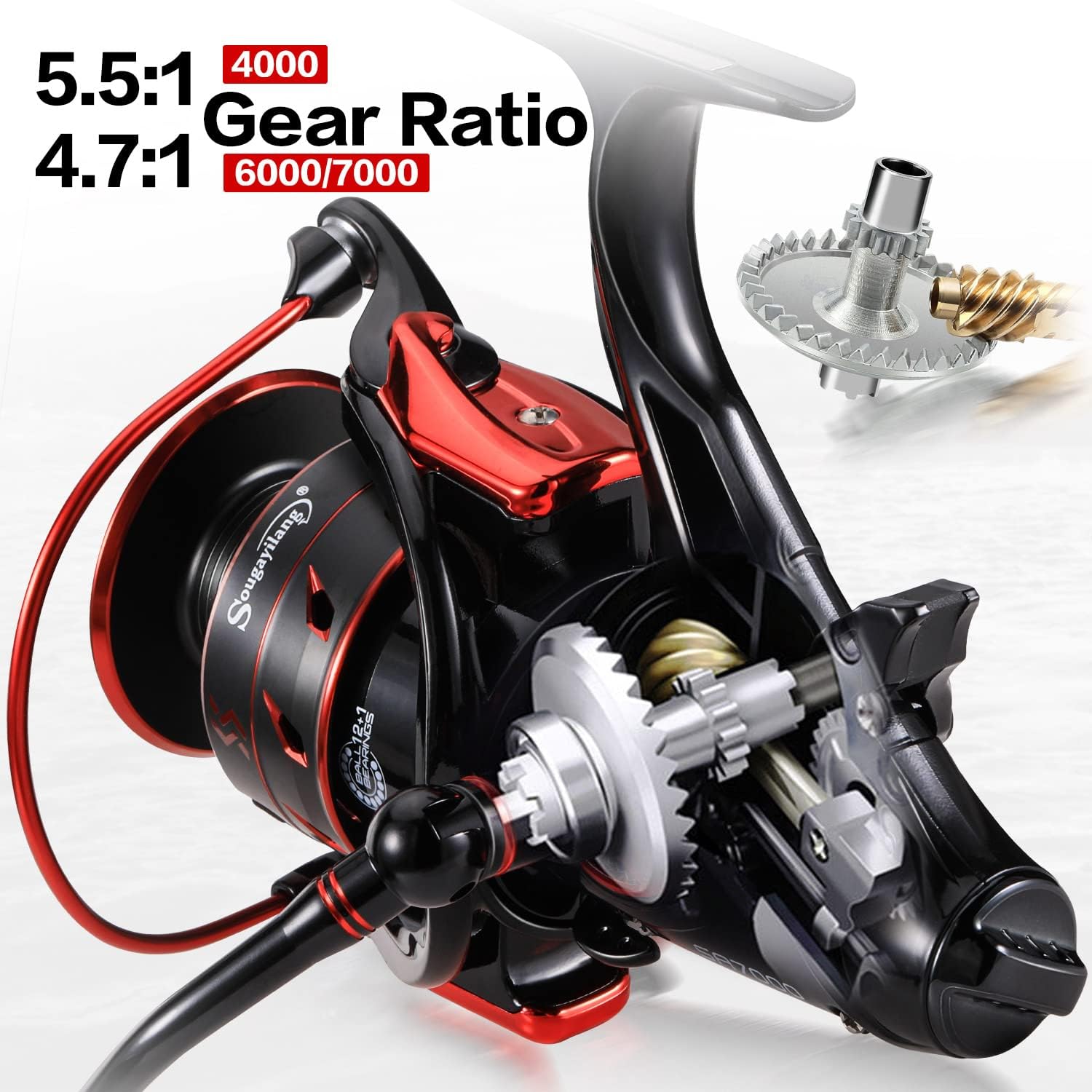 - FORTGESCHRITTENE TECHNOLOGIE - Sougayilang verwendet ein asymmetrisches Spinnrollen-Rotordesign mit aerodynamischer Balance auf der SA-Rolle, die sich leichter dreht und ein ausgewogeneres Gefühl beim Einholen der Schnur vermittelt. Diese Angelrolle