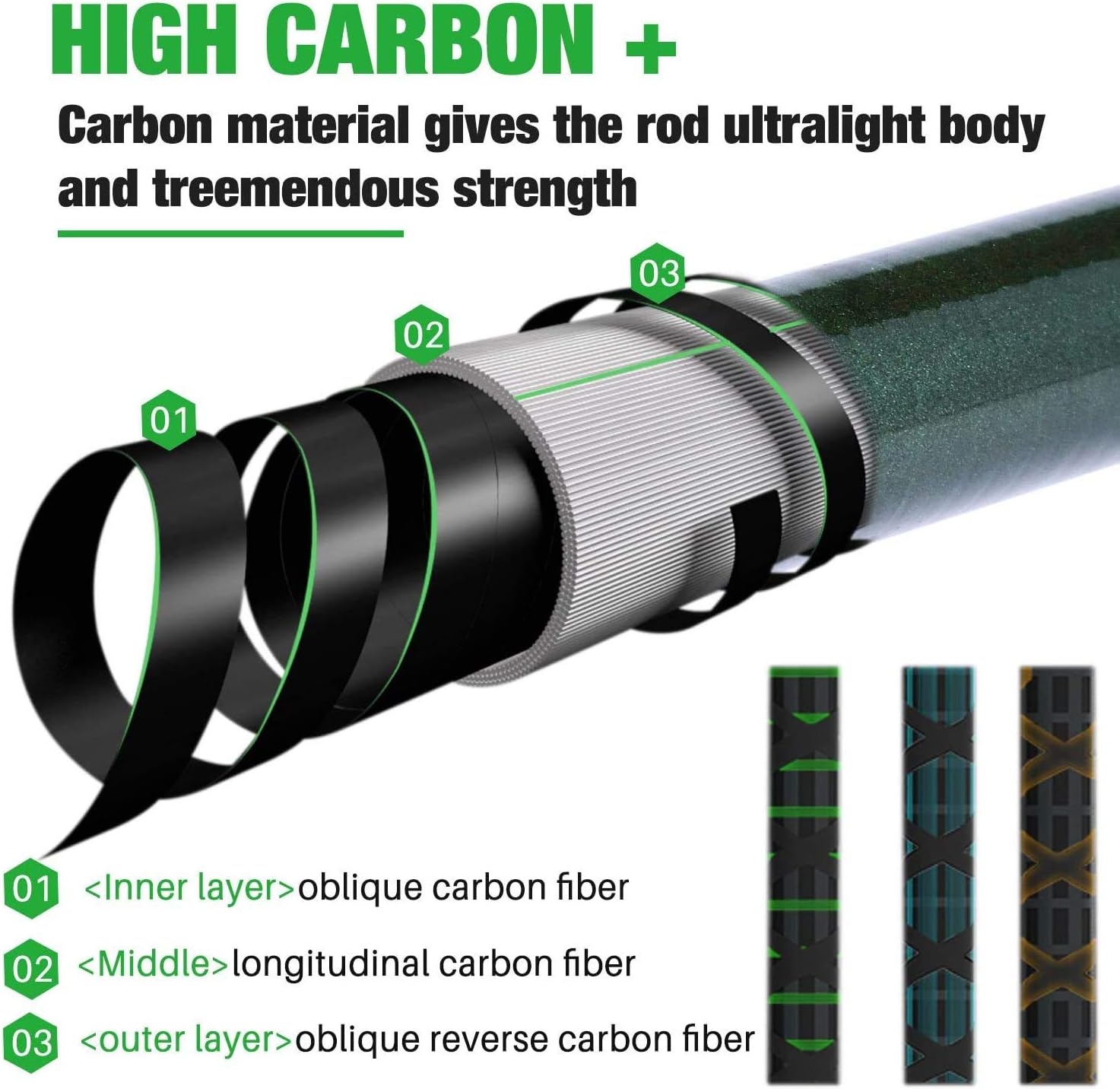 - Modisches Aussehen: Die beliebtesten Farb-Angelruten in diesem Jahr - gut hergestellt aus 24T-Kohlefaser und Edelstahl-Kapuzenrollensitz mit Beständigkeit gegen Meerwasserkorrosion. Der mit einem Keramikring gefertigte Leitungsring aus Edelstahl verbessert die Wärmeableitung. Der EVA-Griff ist weich und angenehm zu halten.