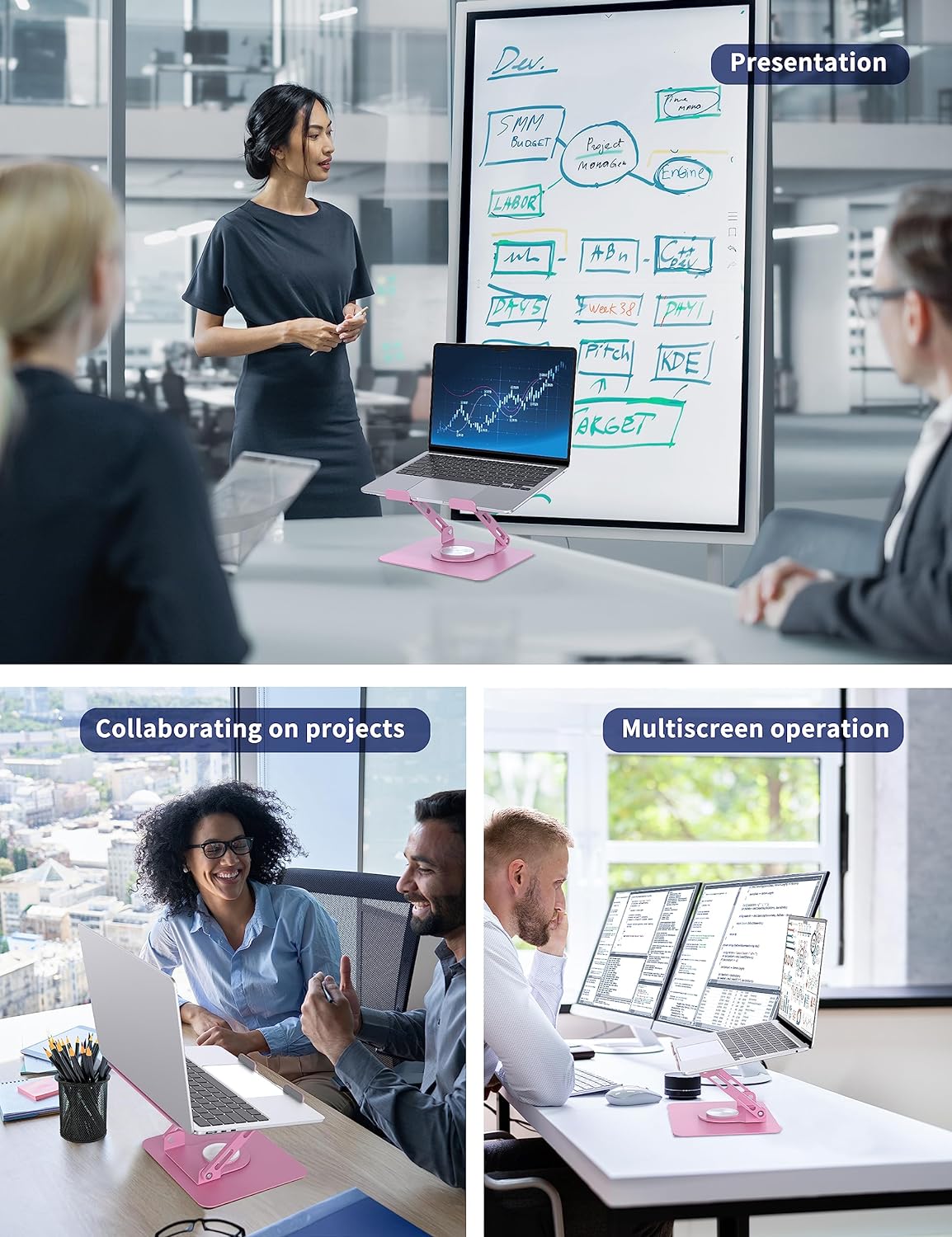 • Zusammenarbeit mit Leichtigkeit: Der SOUNDANCE Laptop-Ständer verfügt über eine um 360° drehbare Basis, so dass es einfach ist, Ihren Computer-Bildschirm mit anderen zu teilen und an Projekten zusammenzuarbeiten.