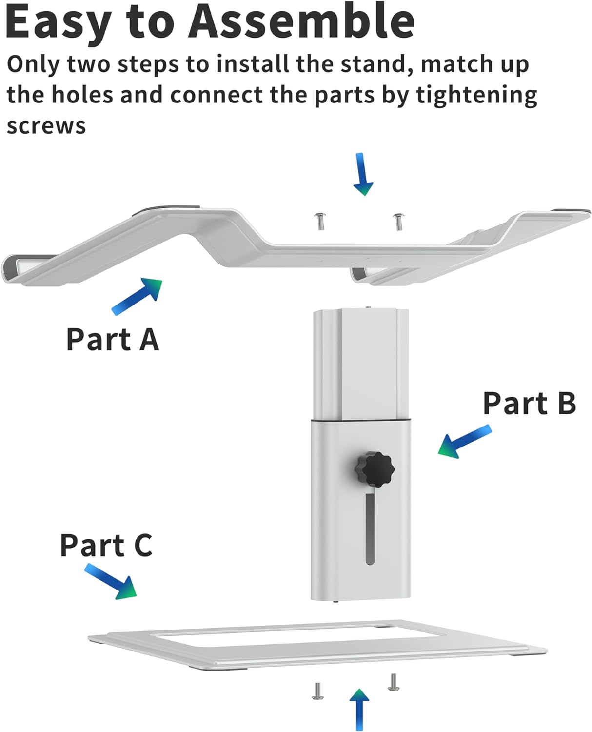 - Bietet Schutz und eine einfache Montage - Die Silikonpads auf der Oberfläche halten deinen Laptop an Ort und Stelle und schützen dein Gerät vor Kratzern. Es sind übrigens nur zwei Schritte erforderlich, um den Ständer zu montieren, die Löcher