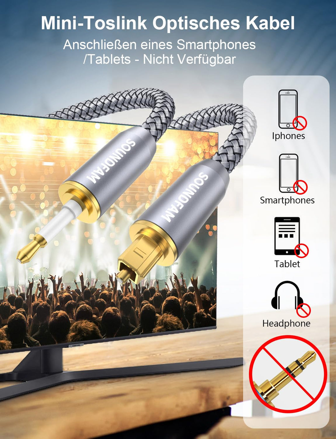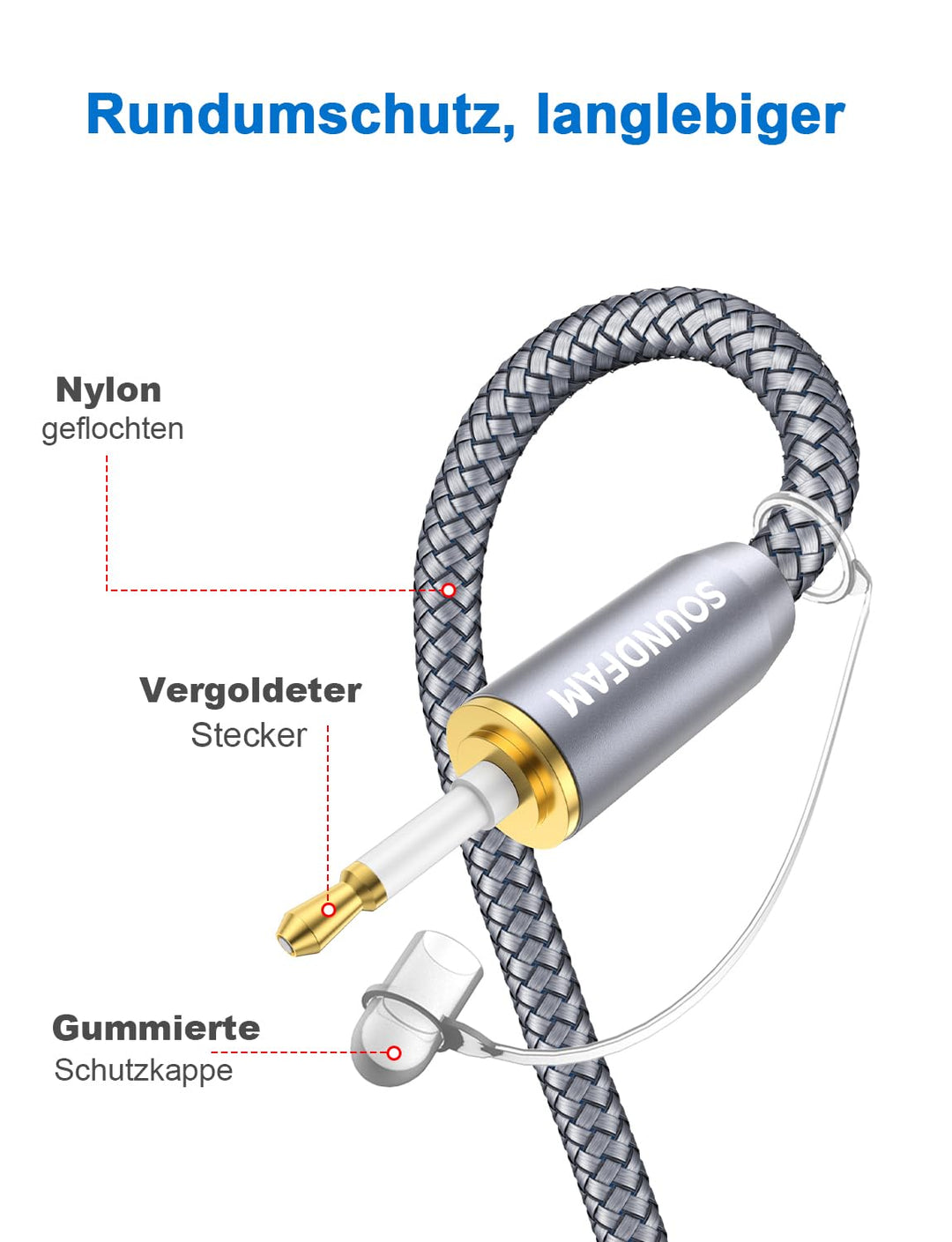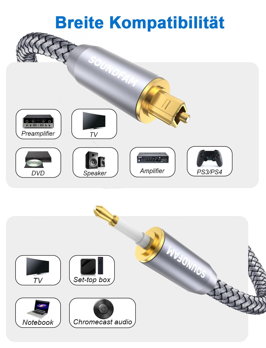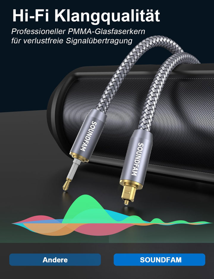 - 【SOUNDFAM - Dienstleistung】➤ Verpackung: 1 x Mini Toslink Optisches Audiokabel - 3M; Nach - Verkaufs - Dienstleistung: lebenslange Garantie, lebenslange freundliche Kundendienst, 30 - Tage - Rückerstattung bei Unzufriedenheit ohne Rückgabe der