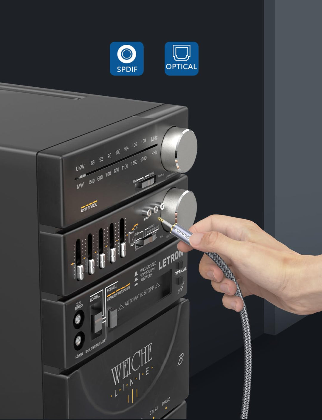 - 【Richtige Verwendung von Mini-TOSLINK Optisches Audiokabel】➤ Für Geräte mit Mini-TOSLINK-Ausgängen und Geräte mit TOSLINK-Eingängen (OPT oder SPDIF), z. B. Chromecast Audio/Echo Studio/Verstärker/Soundbars/Echo Walls, etc. ❗ Nicht geeignet