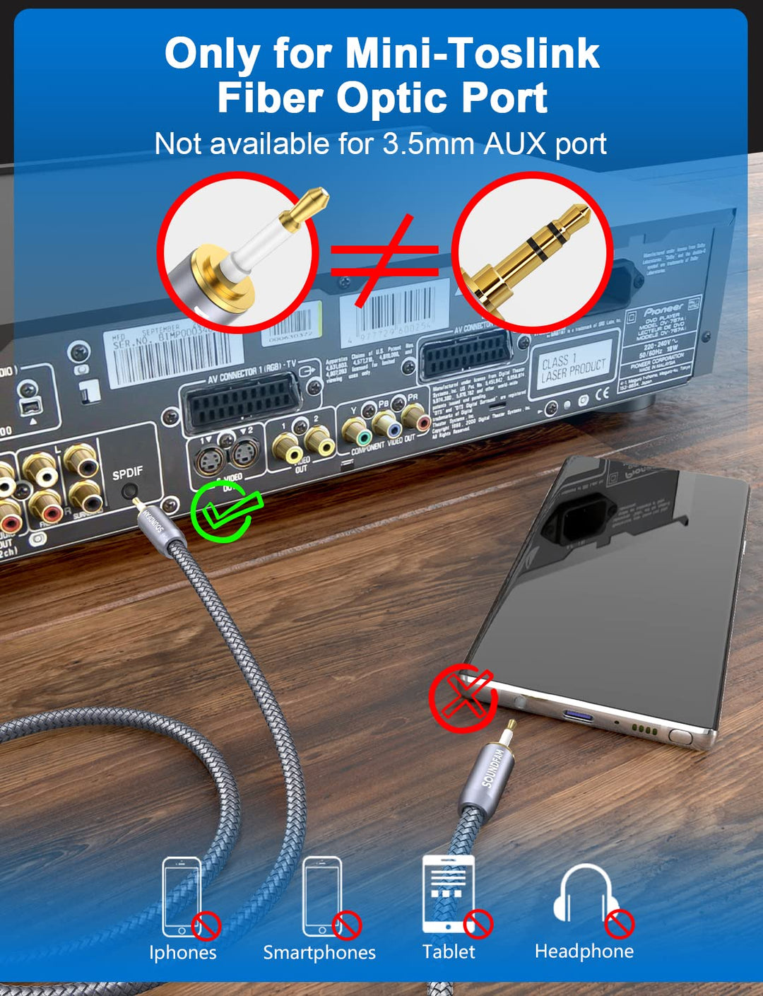 - 【Einschränkungen bei der Nutzung】➤ Es ist wichtig zu beachten, dass Mini-Toslink-Kabel keine digitalen Audiosignale in analoge umwandeln und umgekehrt. Ausserdem haben Smartphones in der Regel keine optischen 3,5-mm-Anschlüsse.