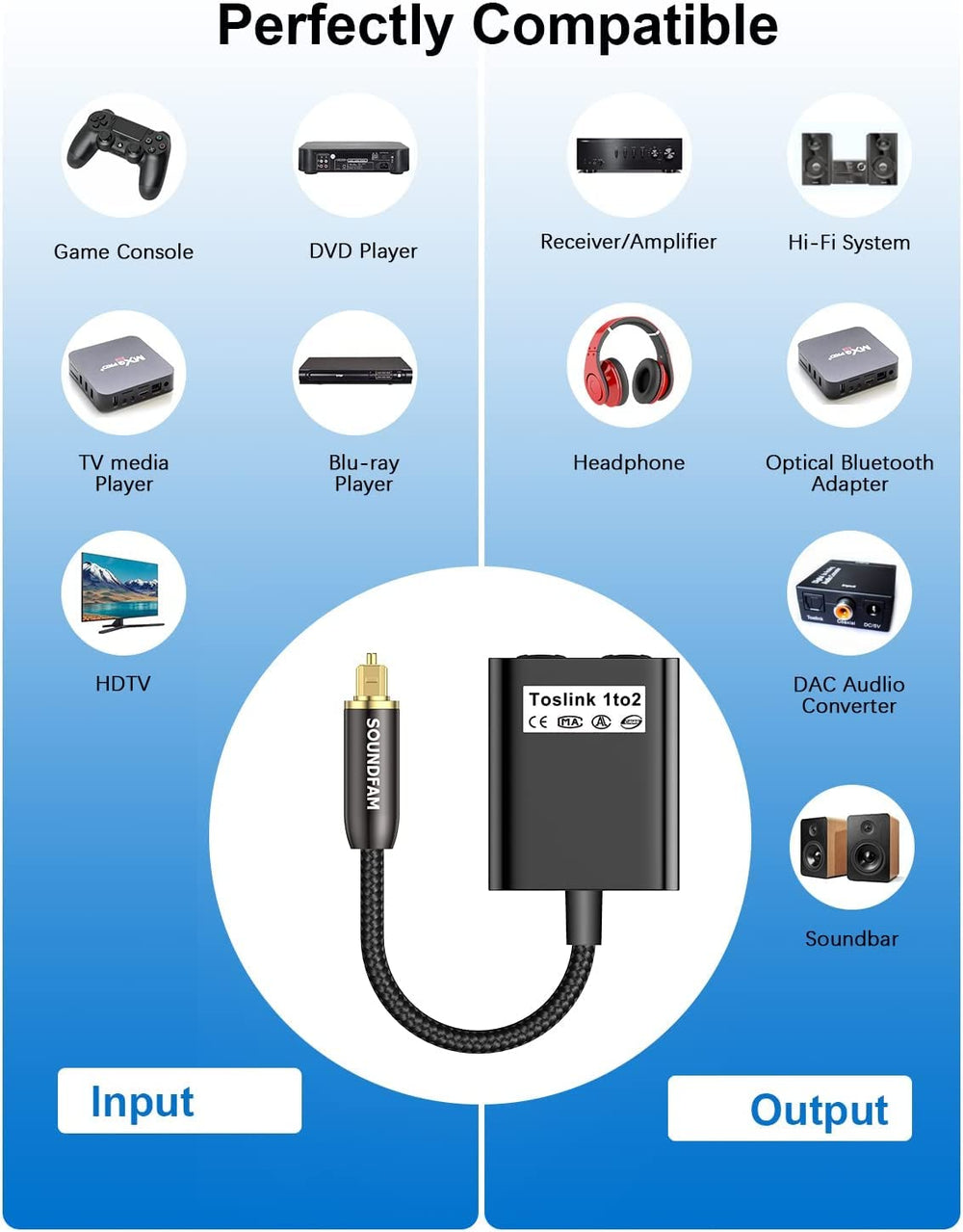 - 💎🧡【Perfekte Kompatibilität】Toslink Splitter können an jede Audiokomponente mit einem TOSLINK oder OPTICAL Anschluss angeschlossen werden, wie z.B. CD-Player, DVD-Player, Soundbars, Receiver, Vorverstärker oder andere digitale Audioquellen an
