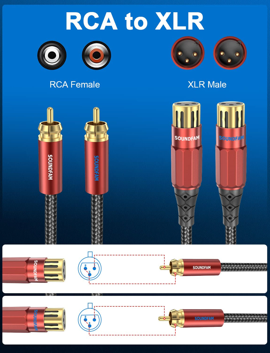 - đăXLR auf Cinch Kabelă†SOUNDFAM High-End Cinch auf XLR Audioverbindungskabel mit zwei XLR-Buchsen und zwei Cinch-Steckern bietet vielseitige Verbindungen fĂŒr eine Vielzahl elektronischer AudiogerĂ€te: wie Mikrofone, VerstĂ€rker, Mischpult,
