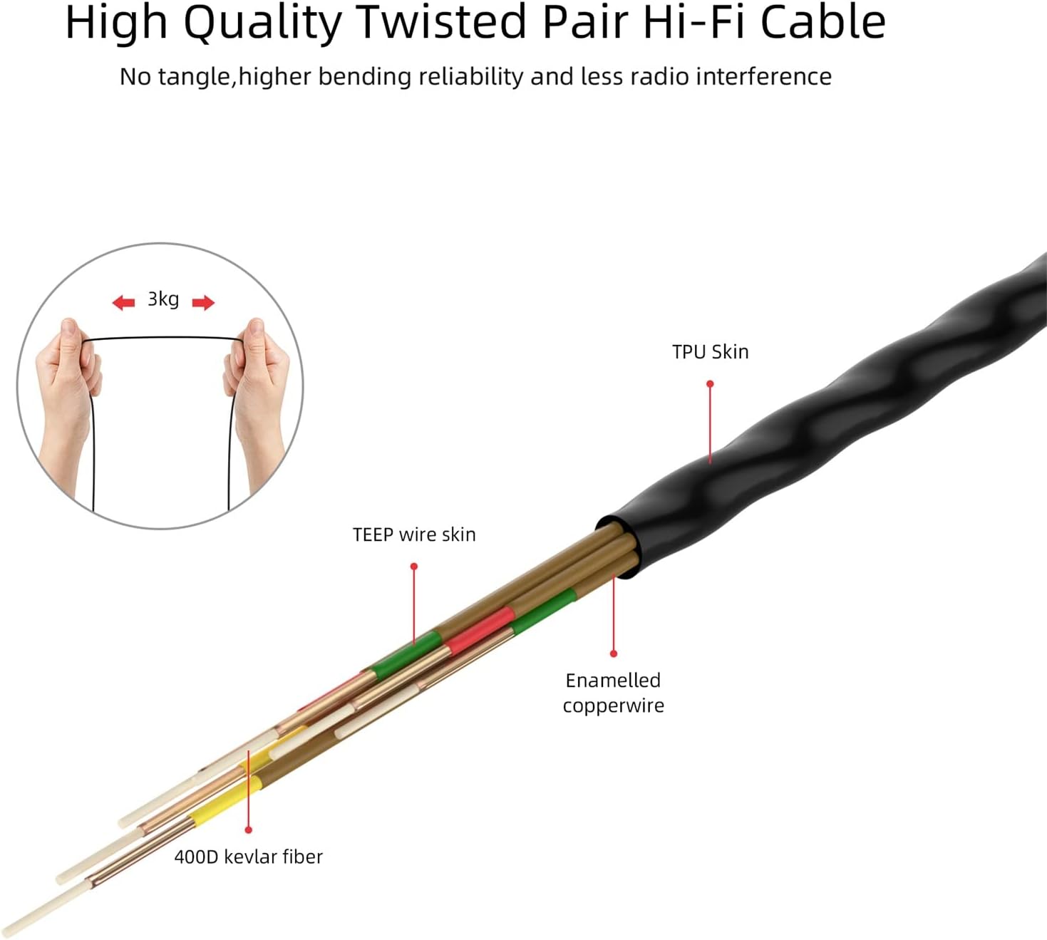 - Hochwertiges Twisted-Pair-HiFi-Kabel: Das Kabel mit verdrillten Adernpaaren sorgt für eine längere Lebensdauer, verhindert einen Kabelsalat und Rauschen durch HF-Interferenzen und bietet darüber hinaus auch einen hochauflösenden Klang.
