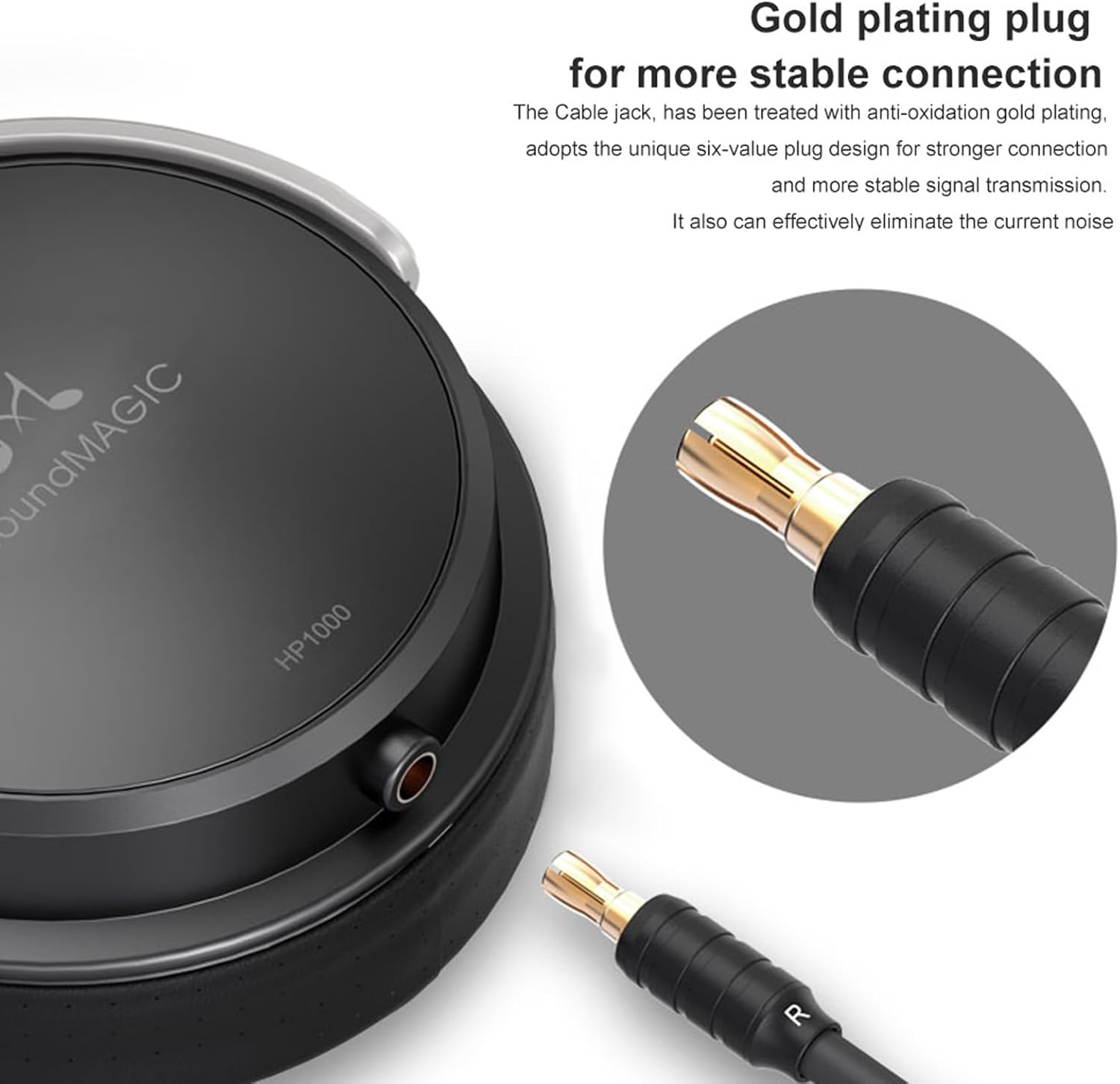 - Spezieller vergoldeter Stecker für eine stabilere Verbindung und eine hohe Zuverlässigkeit: SoundMAGIC hat für diese Premium-Kopfhörer spezielle Stecker und Anschlüsse entworfen: einen einzigartigen, spitz zulaufenden vergoldeten Stecker mit sechs