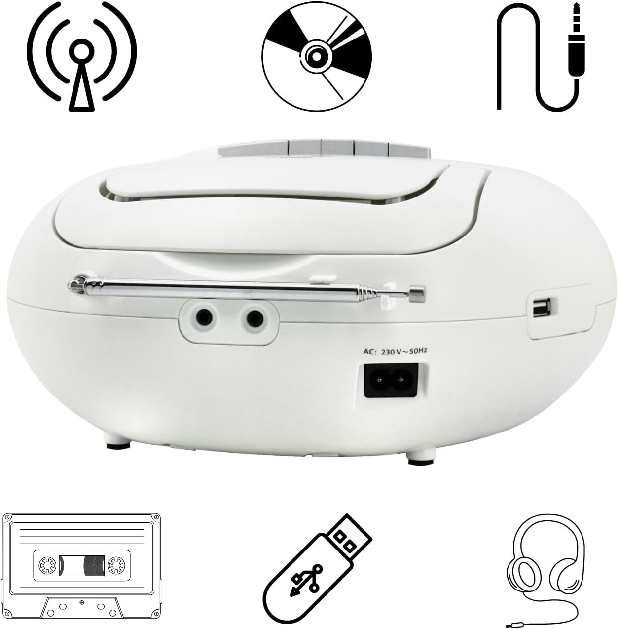 - Multifunktionales CD- und Kassettenabspielgerät: Spielen Sie CD, CD-R/RW, CD-MP3, Kassetten und USB-MP3 ab, inklusive Hörbuchfunktion.